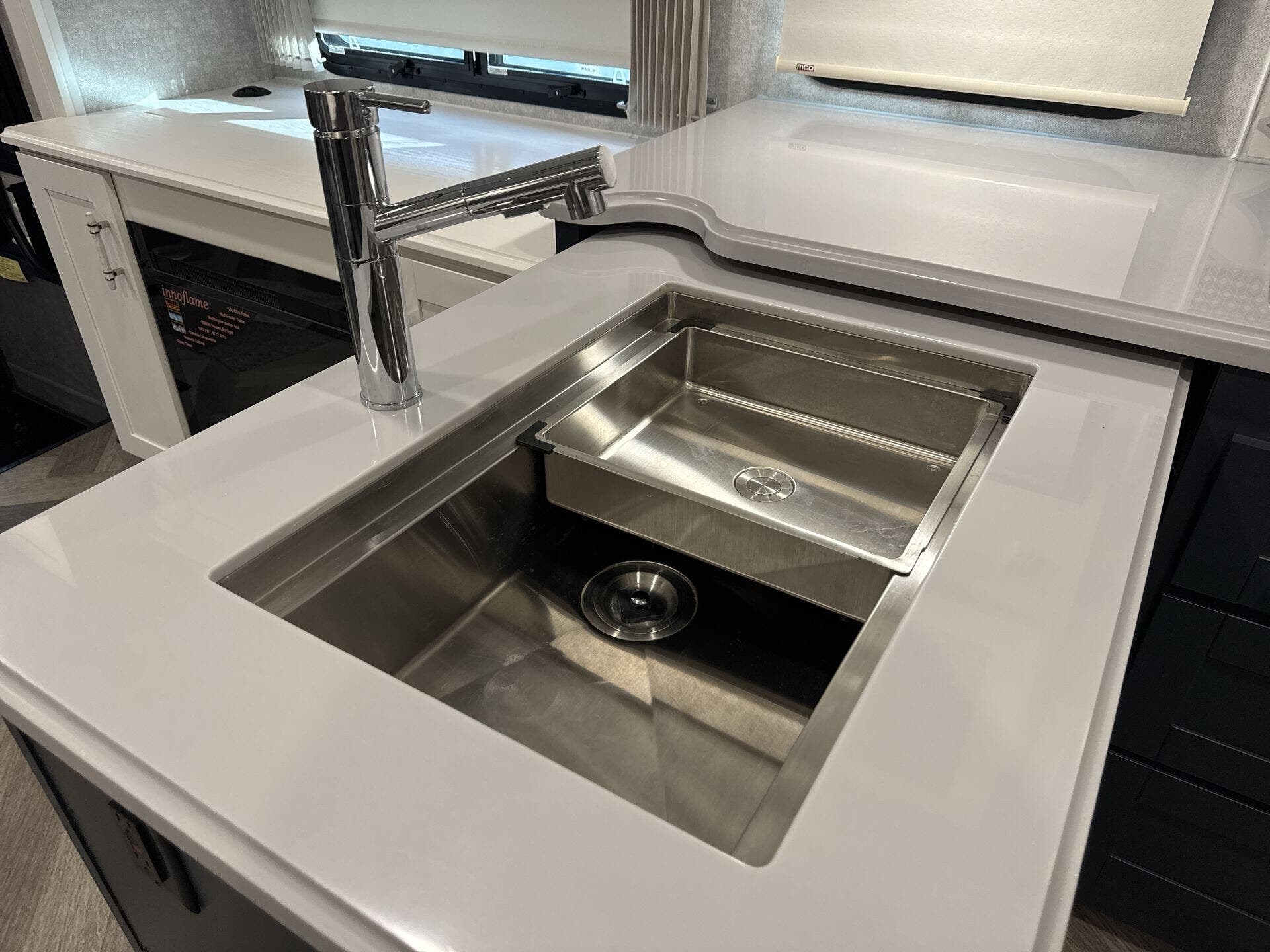- Microwave, Refrigerator, Stove Top Burner, and Kitchen Sink for full meal prep on the go