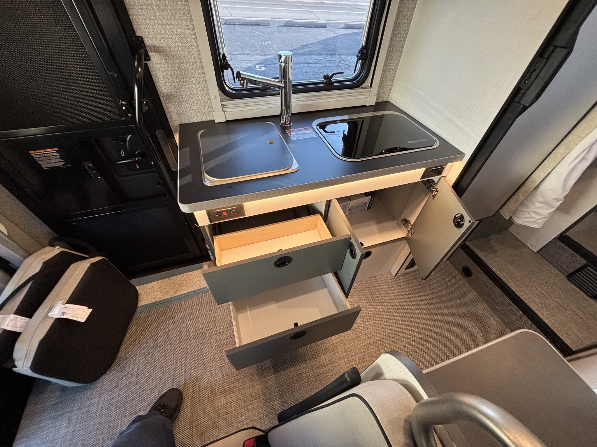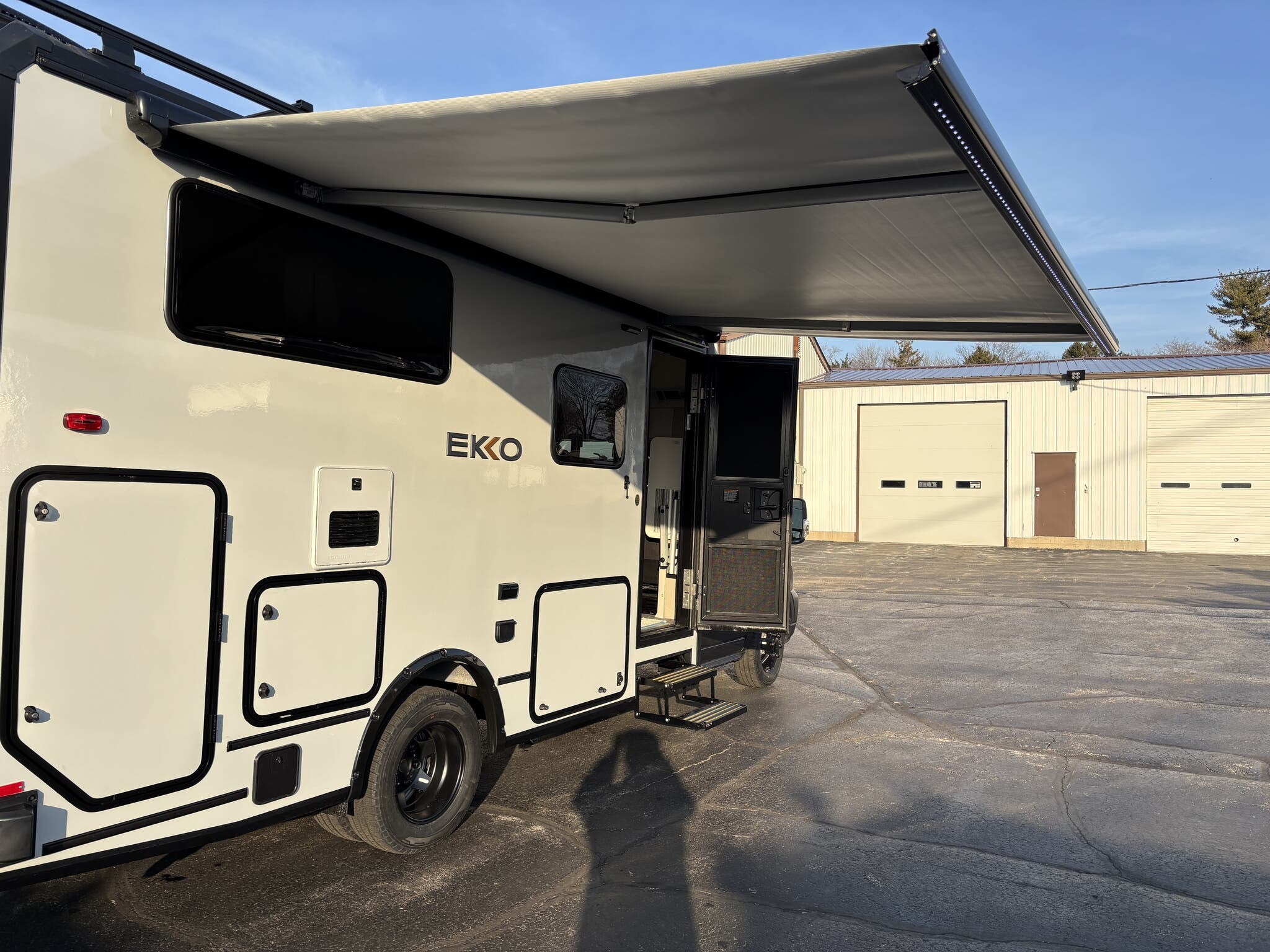 The Ekko boasts a compact length of 23 feet, an impressive height of 10 feet 6 inches, and a width of approximately 7 feet 2 inches, making it manageable on any road. With a Ford Transit chassis and a robust EcoBoost V6 engine delivering 310HP, this RV allows for smooth driving, whether you're navigating city streets or vast highways.