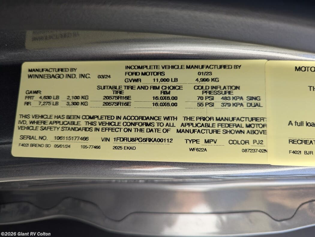 Visit Giant RV in California today to explore the 2025 Winnebago EKKO Transit 22A—your agile, high-capability home on wheels built for every journey.