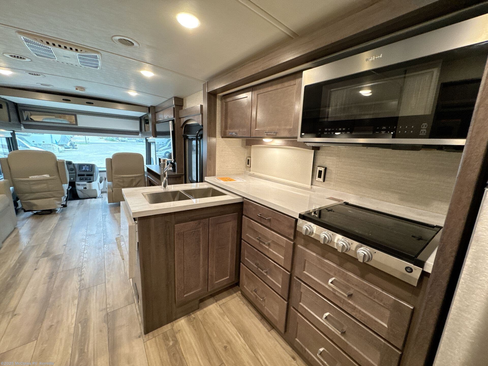 The interior is designed to provide a home-like atmosphere with space for up to eight sleepers, making it perfect for families and group trips. While specific interior colors are yet to be announced, Winnebago's reputation for premium interiors guarantees a luxurious environment. The Forza is equipped with modern amenities such as a microwave, oven, refrigerator, stove, and stovetop burner, along with a washer, water heater, and comprehensive climate control system with a 27,000 BTU air conditioner.