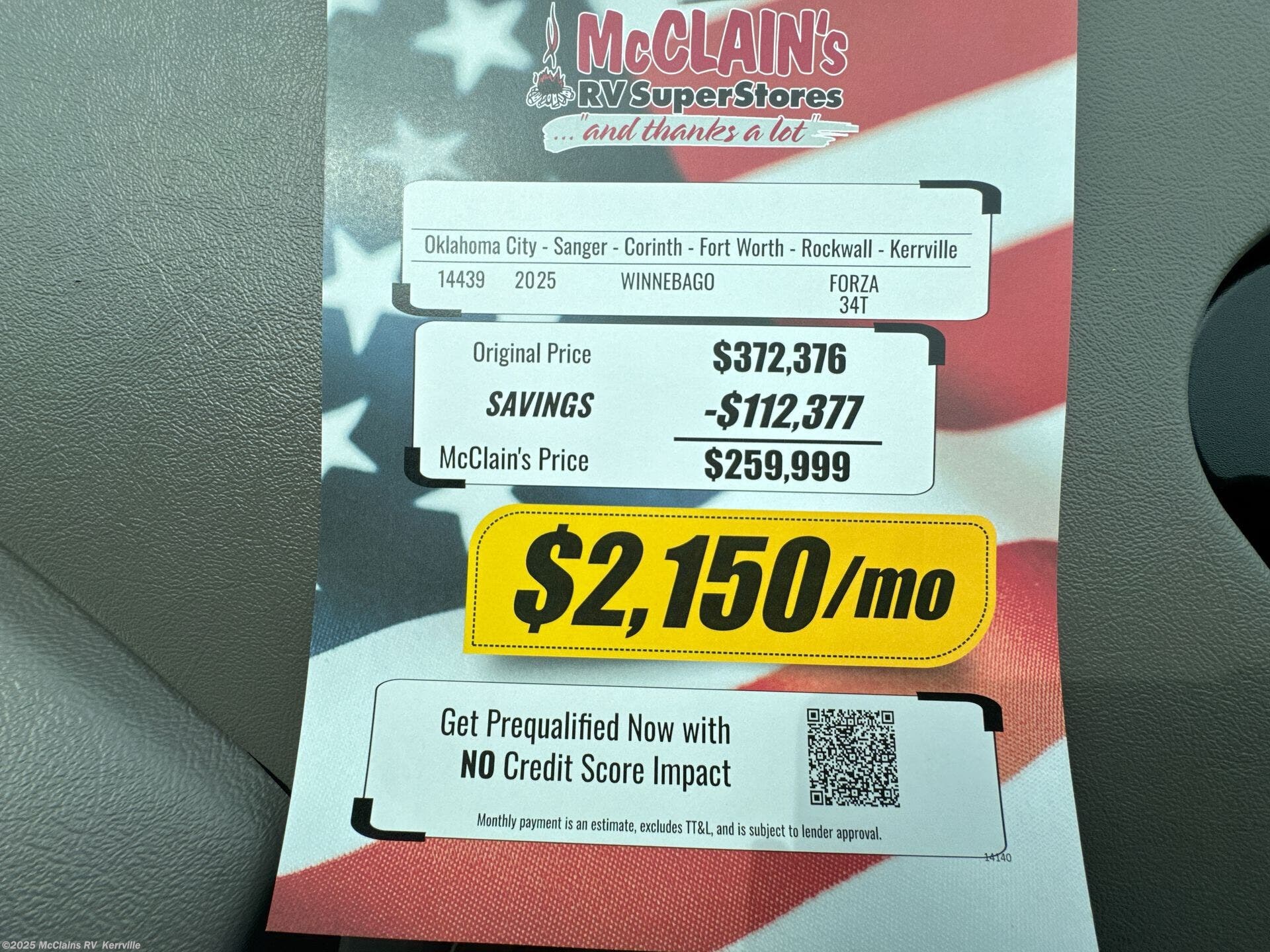 Request More Info on this 2025 Winnebago Forza 34T Offered for sale by McClains RV