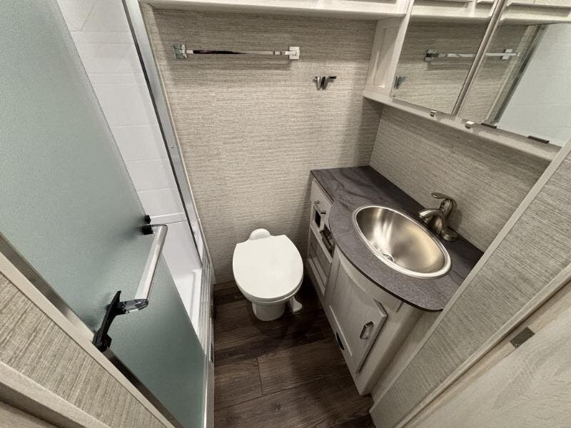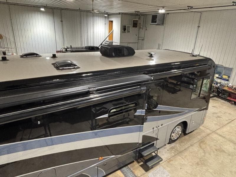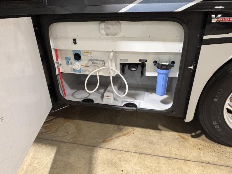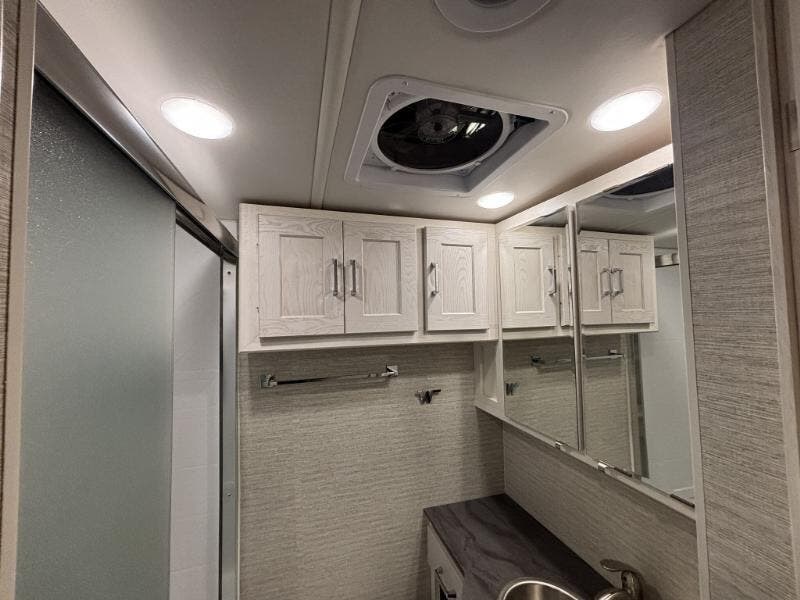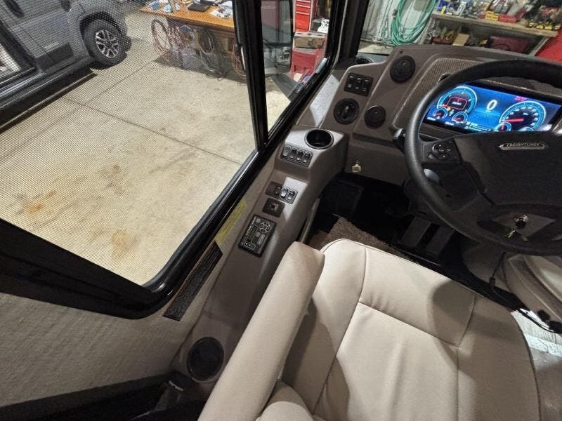 Features Include: 340 HP, 160-Amp Alternator, Exhaust Engine Brake, Air Brakes with ABS, Cab Features, Side Camera, OptiView Dash, Apple CarPlay, Android Auto, Sirius XM, Cell Phone Interface, Power Steering, Cruise Control, Living Spaces, 38W), KeyOne Lock System, Entry Assist Handles, Vinyl Flooring, Soft Vinyl Ceiling, LED Ceiling Lights, 38W), 38W), BenchMark Dinette, Pull-Out Table (36H), Pantry, 36H), Corian Countertops, Corian Sink Covers, 3-Burner Cooktop, Bi-Fold Glass Cover, WiFi Signal Booster, Cable TV Hookup, 50-inch HDTV, Headboard, 38W), Wardrobe, Under Bed Storage, HDTV Bunk Beds (38W), Medicine Cabinet, Laminate Countertop, Skylight, 50-Amp Service Cord, 6000w Generator, Furnace Ducted Heat, On Demand Water Pump, Outdoor Wash Station, Aluminum Structure