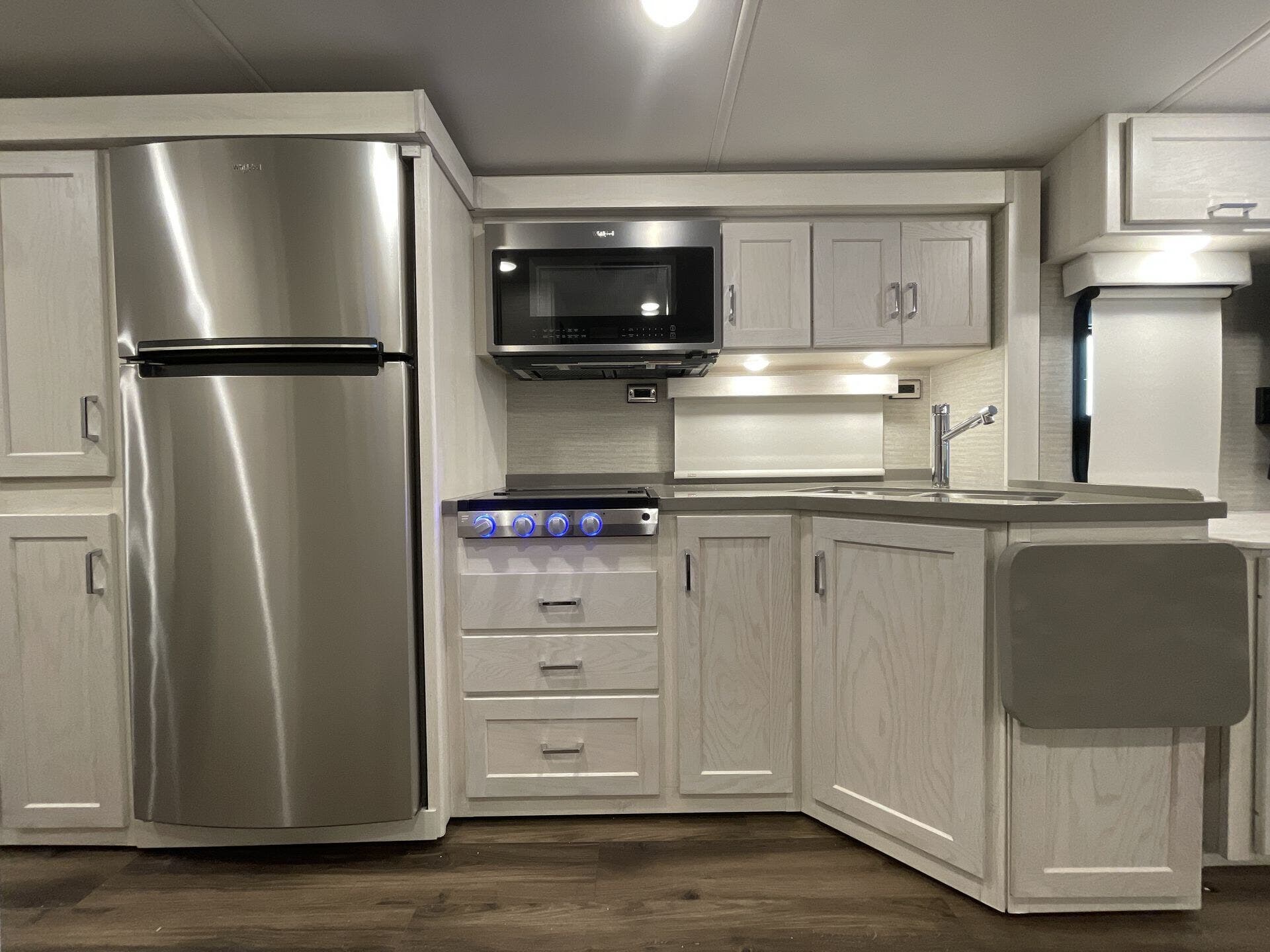 This travel trailer is equipped with top-of-the-line amenities to enhance your travel experience, including: