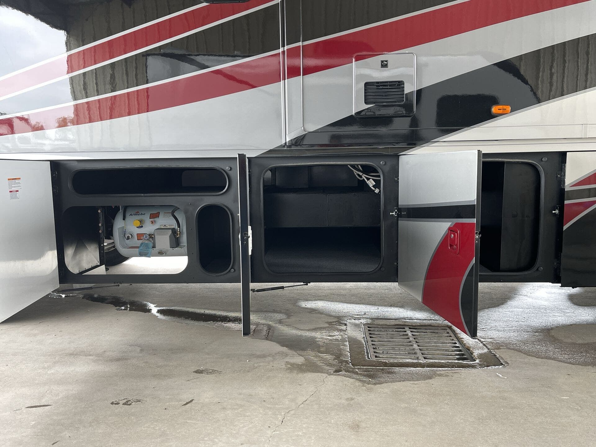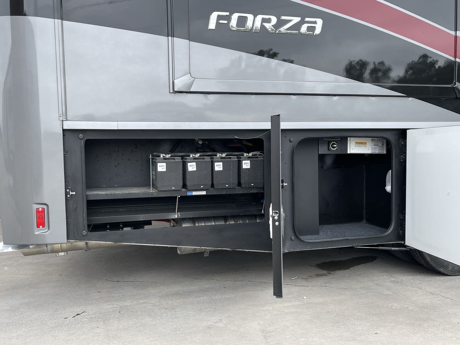 Designed for durability and convenience, the Forza includes an 8.458-foot width, a 12-foot height, and features like an awning, power entrance step, power roof vent, slideouts (3), and air assist suspension for smoother rides. Other exterior amenities consist of an external shower, hitch, leveling jacks, and a storage capacity suitable for all your travel gear.