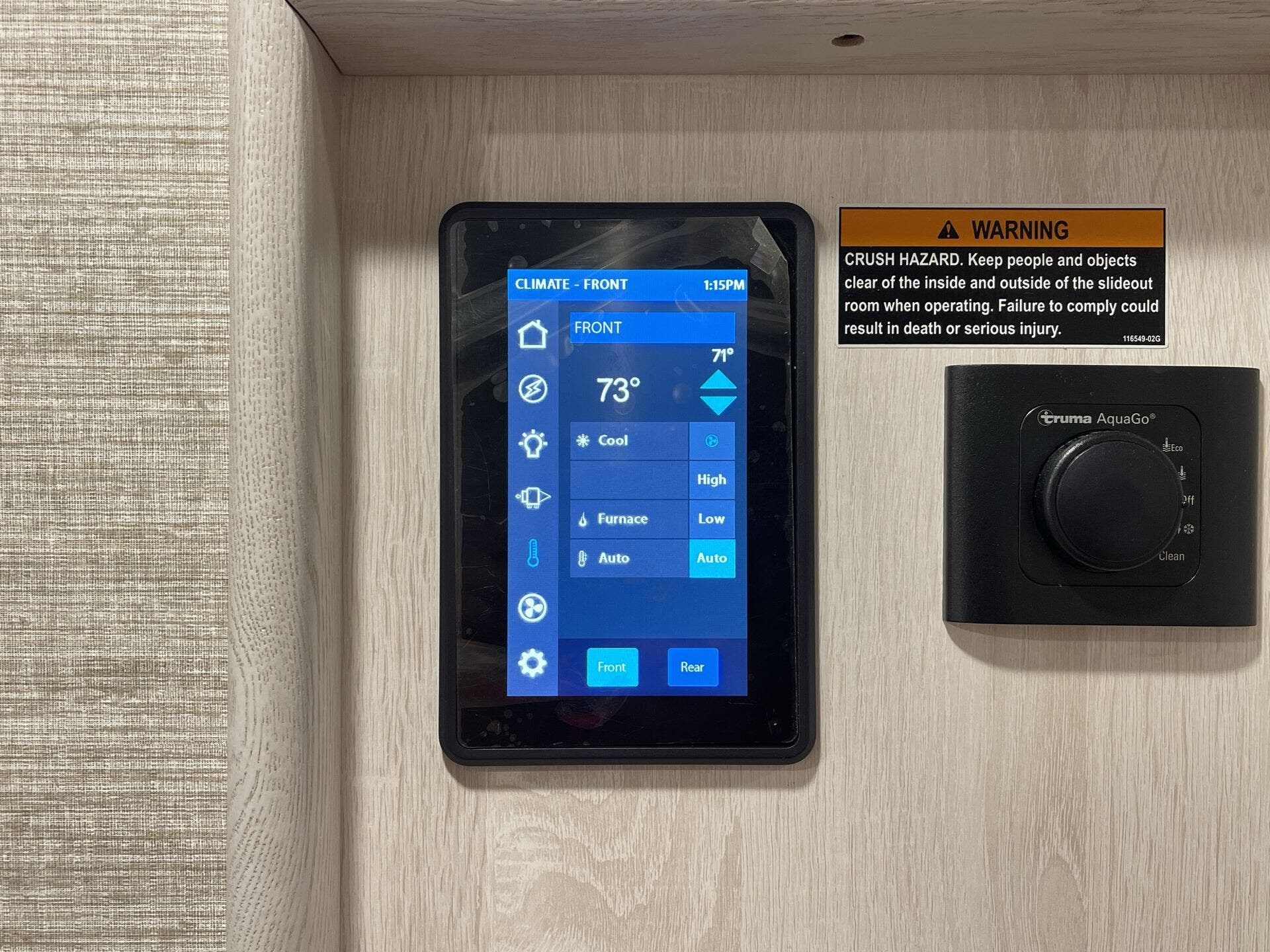 - Climate control with a 30,000 BTU air conditioner and roof vents