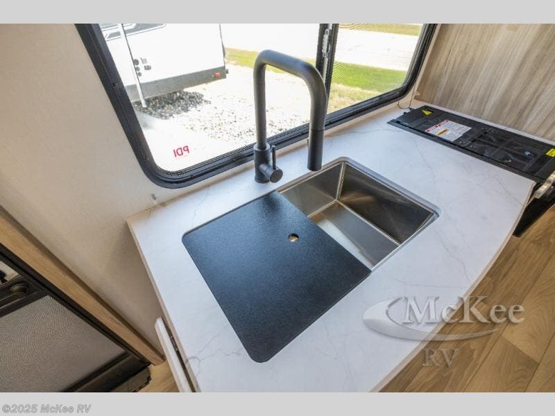 Each M-Series travel trailer features a fully enclosed underbelly, a one piece TPO fully walkable roof, NXG engineered frame with triple solid entry step for ease in entering as well as manual stabilizer jacks that make your time in camp enjoyable. These units feature ample storage both inside and out, plus versatile sleeping arrangements and complete kitchen and baths plus full overlay European style cabinetry, sealed countertops, blackout roller shades for privacy, and a large 14" x 22" skylight over each shower. This perfect blend of practicality and style offers you a functional and comfortable, budget friendly way to camp in an easy to tow trailer. Come choose yours today!