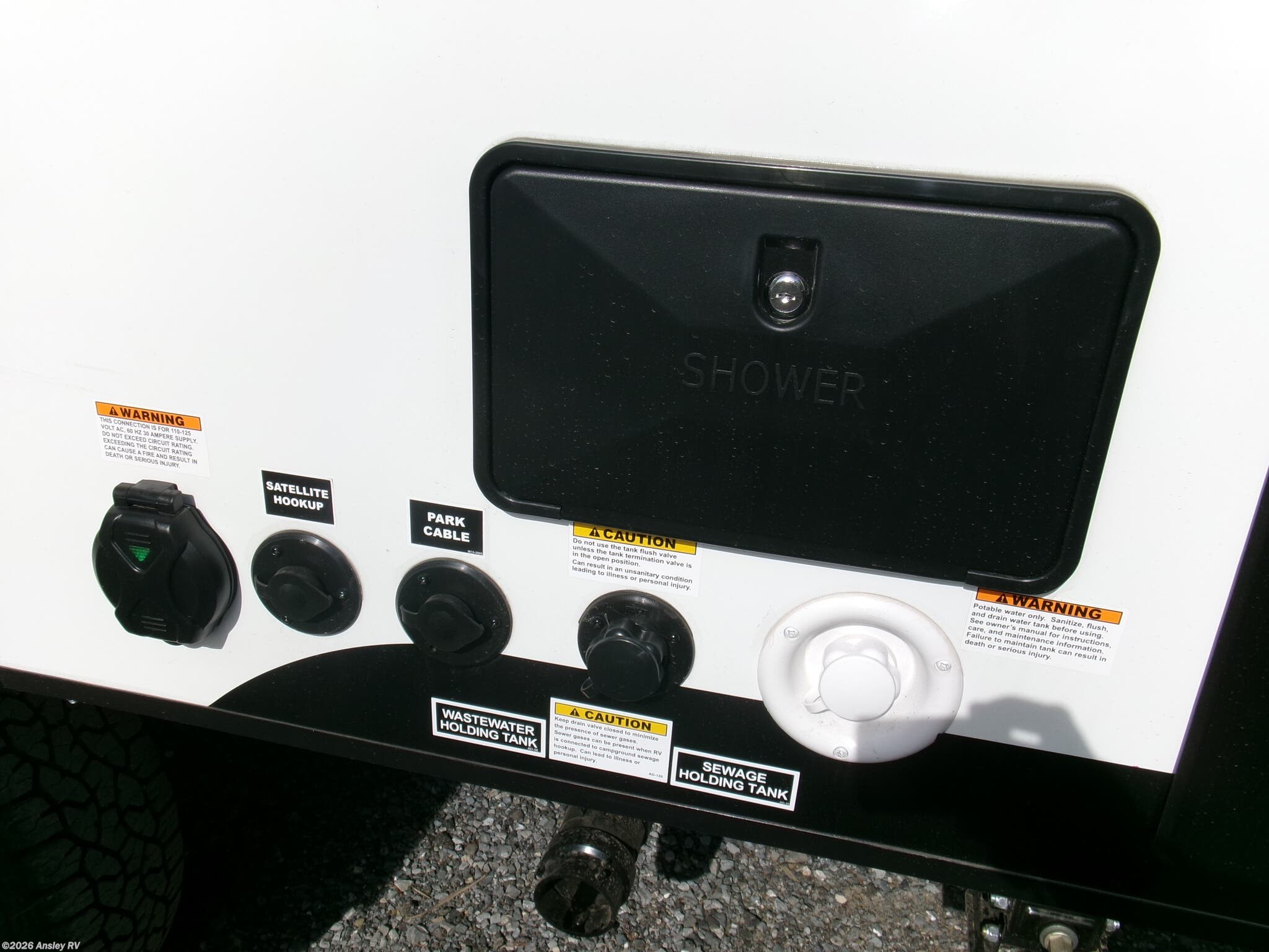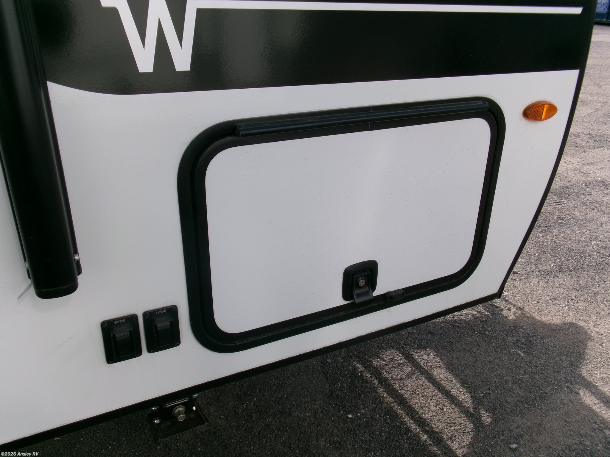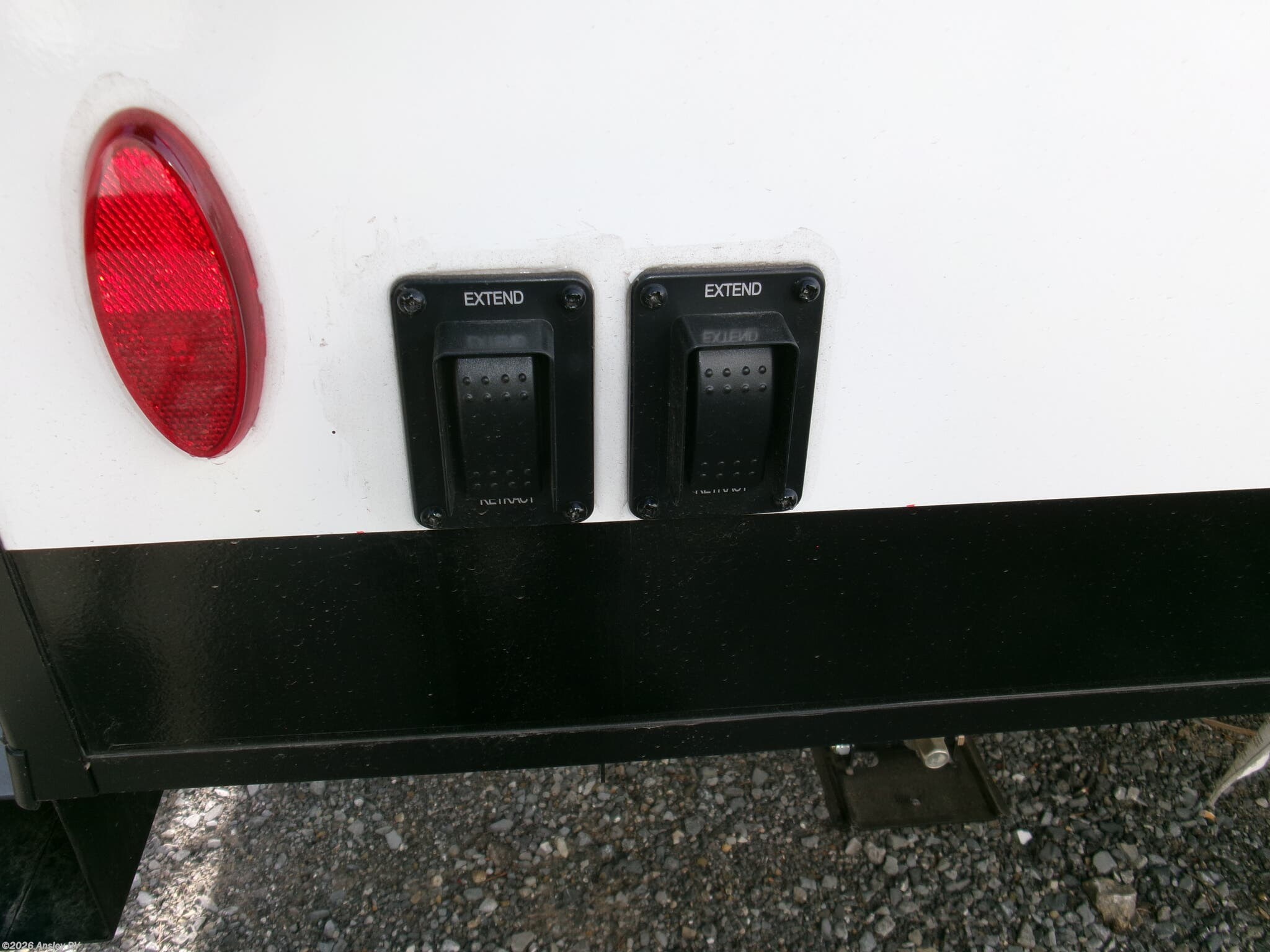 Awning, Exterior Speakers, External Shower, Hitch, Ladder, Leveling Jacks, Power Roof Vent, Skylight, Slideout, Spare Tire Kit -