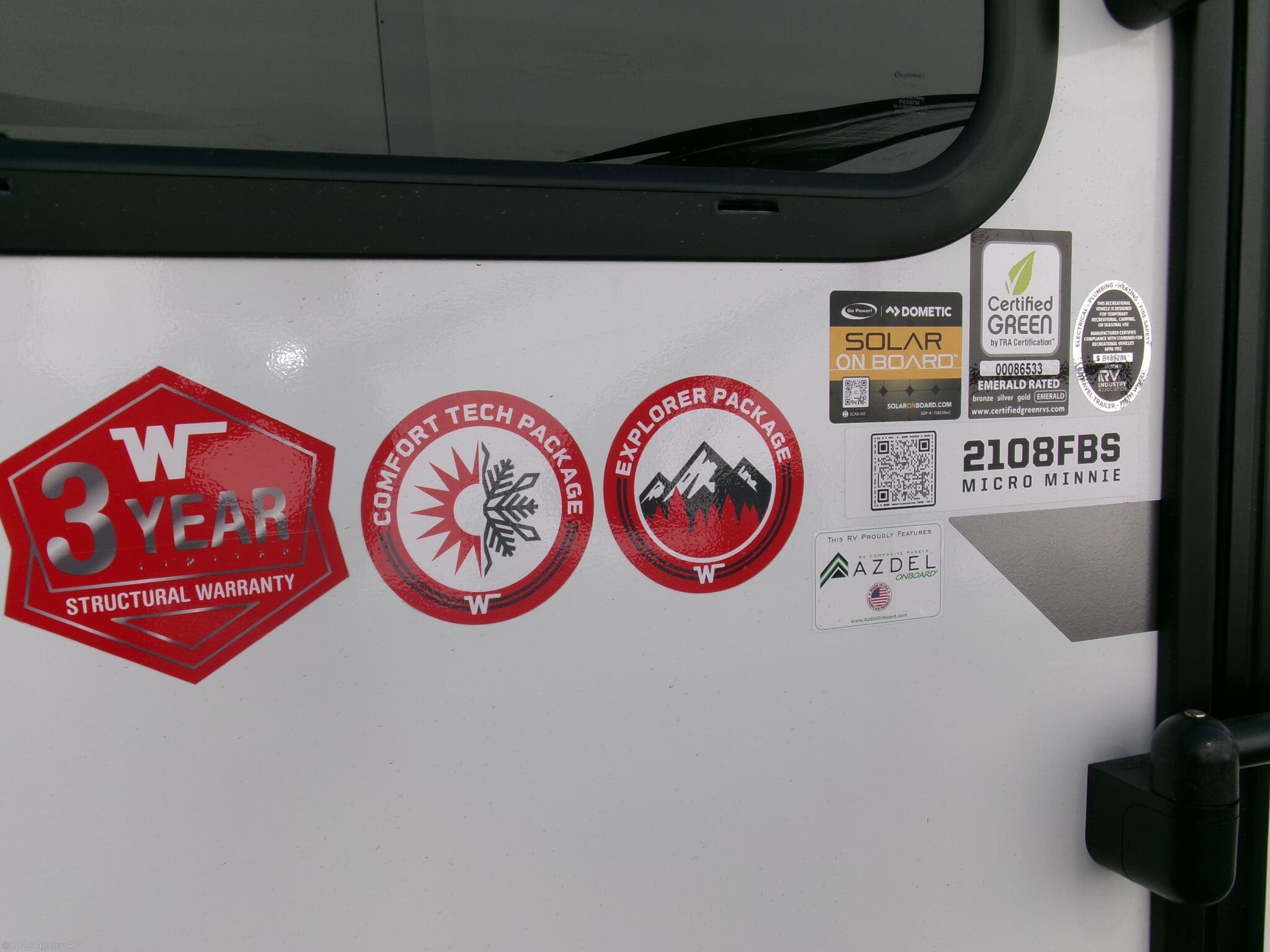 15K BTU A/C UPGRADE, 200 WATT SOLAR PANEL W/ CHARGE CONTROL MONITOR, 12V HOLDING TANK PAD HEATERS W/ INTERIOR SWITCH, POWER STABILIZER JACKS, GOODYEAR TIRES, ADVENTURE,CONVENIENCE, AND VERSATALITY PACKAGES