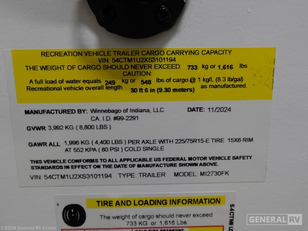 2025 Winnebago Minnie 2730FK Specifications