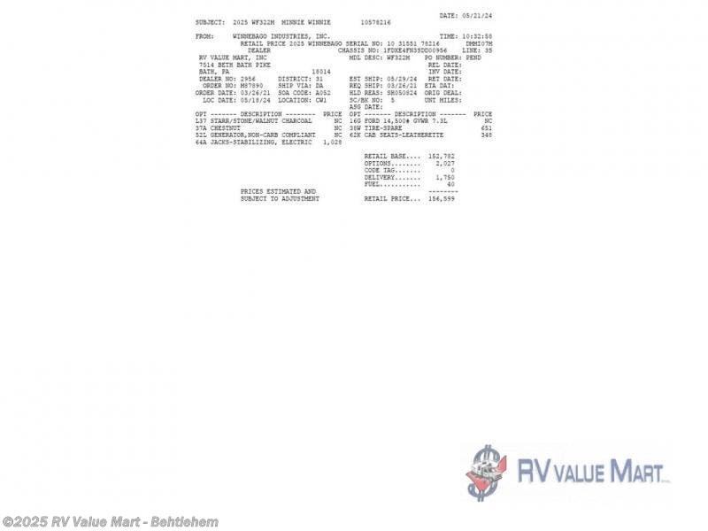 Request More Info on this 2025 Winnebago Minnie Winnie 22M Offered for sale by RV Value Mart - Behtlehem