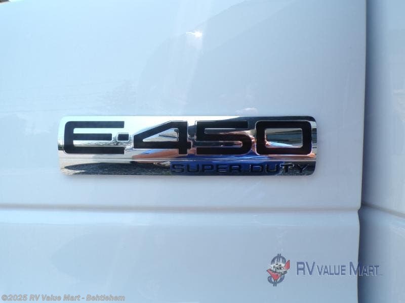 Start living your best travel life in this motorhome! After a long day of traveling, enjoy a good night's rest on the 60" x 75" bed in the rear corner bedroom which also has a nightstand, a wardrobe to keep your clothes looking nice, and a 24" HDTV for your entertainment. If you have others who wish to join you, they can sleep on the 57" x 95" bunk over cab with a TV location or even on the 45" x 74" U-shaped dinette once converted. Don't worry about eating fast food while you travel either thanks to the three burner range with glass cover and oven and the two way double door 6.3 cu. ft. refrigerator/freezer with woodgrain paneling. Freshen up after a long day of traveling in the rear corner bathroom with the 23" x 34" shower with a retractable shower door and skylight above for added headroom and natural lighting! This model is shown with the standard E450 chassis specs, but is also available with optional E350 chassis specs; see dealer for more details.