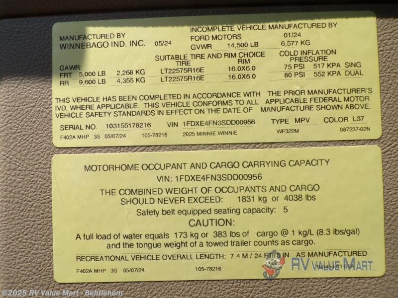 2025 Winnebago Minnie Winnie 22M Specifications