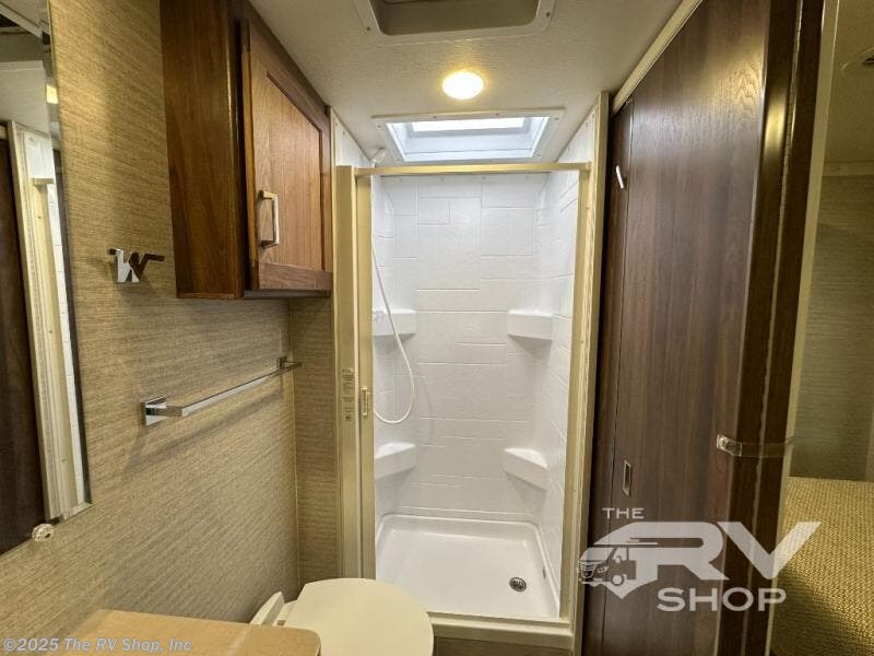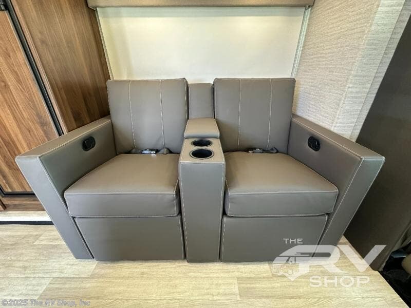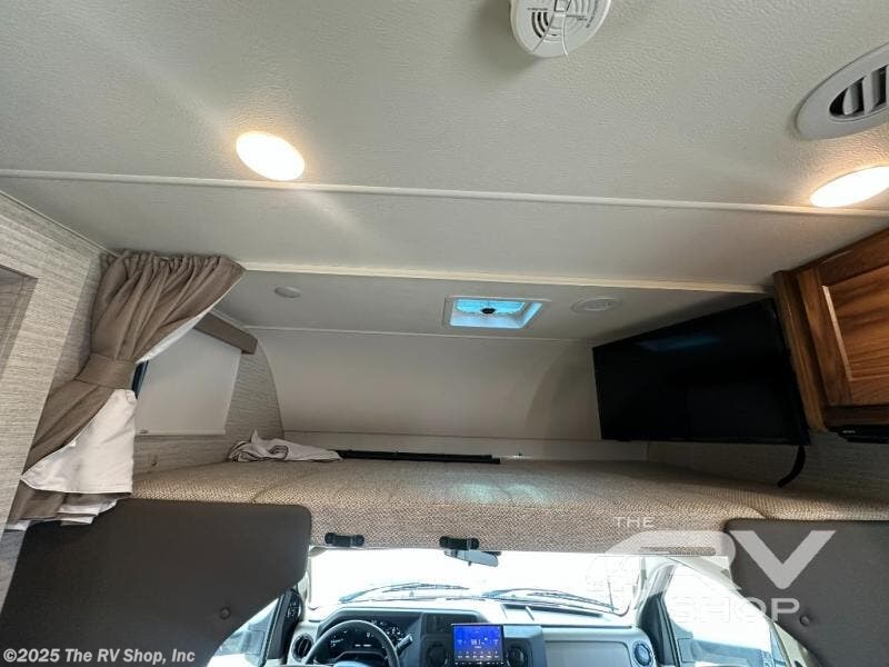 Experience a home away from home with this motorhome! The rear corner private bedroom has a 60" x 75" queen bed slide with nightstands on either side, a 24" HDTV, and an entrance into the rear corner bathroom which has a 24" x 32" shower with skylight to freshen up in the morning. Just outside the bathroom is a wardrobe and storage area to keep your items out of the way. The chef can prepare their best home cooked meals with the three burner range with glass cover and oven and the flip-up countertop extension provides more prepping space. Enjoy your meals at the 45" x 74" U-shaped dinette and relax at night on the 40" x 60" sofa bed that you could switch out for optional theater seating instead. The 57" x 95" bunk over cab with a 32" HDTV is perfect for sleeping or to be used as storage space!