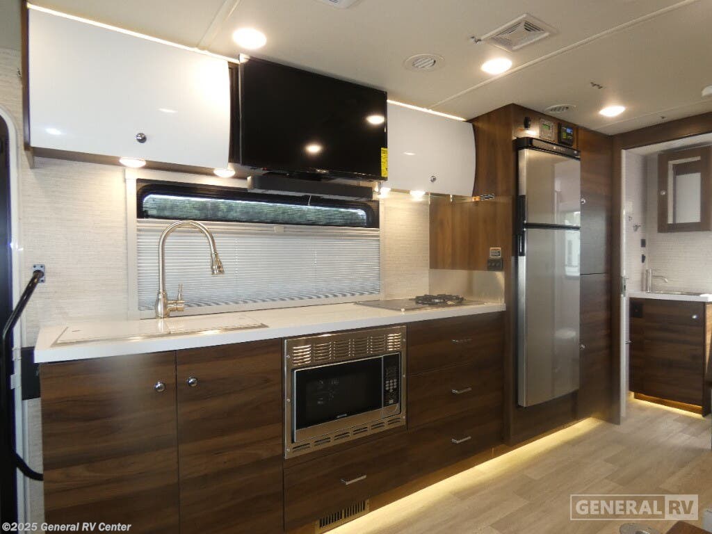Experience the ultimate blend of luxury and functionality with the 2025 Winnebago Navion 24D. This compact yet spacious RV is designed on a robust Mercedes-Benz Sprinter 3500 chassis, powered by a reliable V6 diesel engine. With a length of 25.5 feet, it offers a smooth and efficient ride, perfect for both short getaways and extended adventures. The Navion 24D features a sleek and modern design, highlighted by a 16 ft. powered retractable awning, providing ample outdoor space to relax and enjoy the scenery. Inside, the Navion 24D is thoughtfully designed to maximize comfort and convenience. The innovative floorplan includes a front living area with a cozy U-shaped dinette and a versatile Murphy bed that transforms into a spacious sleeping area. The center kitchen is equipped with a full-size electric refrigerator and a two-burner cooktop, ideal for preparing delicious meals on the road. The rear bath offers privacy and convenience, with a shower enclosed in stylish plastic and glass. With a sleeping capacity for up to six people, this RV is perfect for family trips or gatherings with friends. For more details or to explore this model in person, visit your nearest General RV dealership.