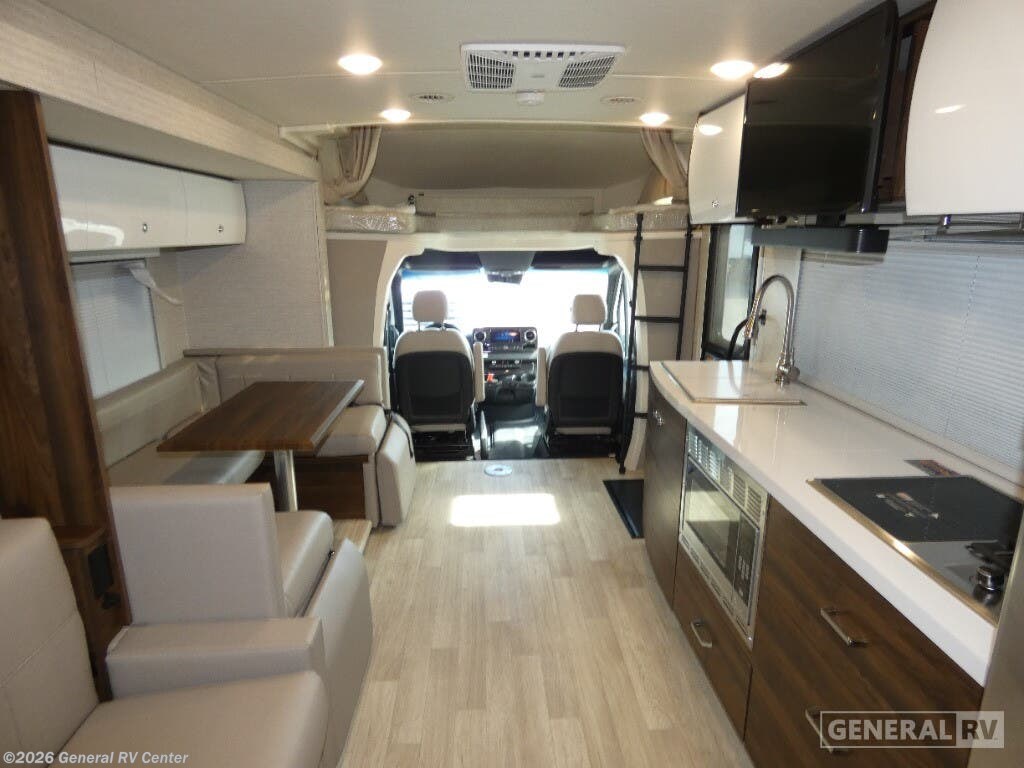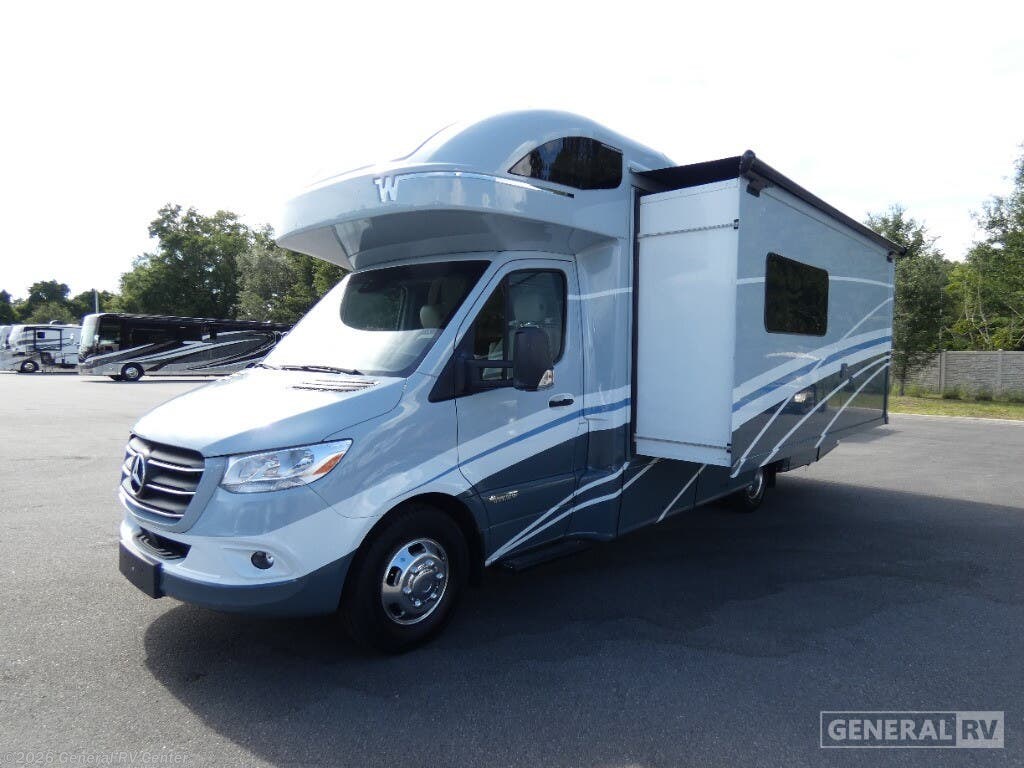 Experience the ultimate blend of luxury and functionality with the 2025 Winnebago Navion 24D. This compact yet spacious RV is designed on a robust Mercedes-Benz Sprinter 3500 chassis, powered by a reliable V6 diesel engine. With a length of 25.5 feet, it offers a smooth and efficient ride, perfect for both short getaways and extended adventures. The Navion 24D features a sleek and modern design, highlighted by a 16 ft. powered retractable awning, providing ample outdoor space to relax and enjoy the scenery. Inside, the Navion 24D is thoughtfully designed to maximize comfort and convenience. The innovative floorplan includes a front living area with a cozy U-shaped dinette and a versatile Murphy bed that transforms into a spacious sleeping area. The center kitchen is equipped with a full-size electric refrigerator and a two-burner cooktop, ideal for preparing delicious meals on the road. The rear bath offers privacy and convenience, with a shower enclosed in stylish plastic and glass. With a sleeping capacity for up to six people, this RV is perfect for family trips or gatherings with friends. For more details or to explore this model in person, visit your nearest General RV dealership.