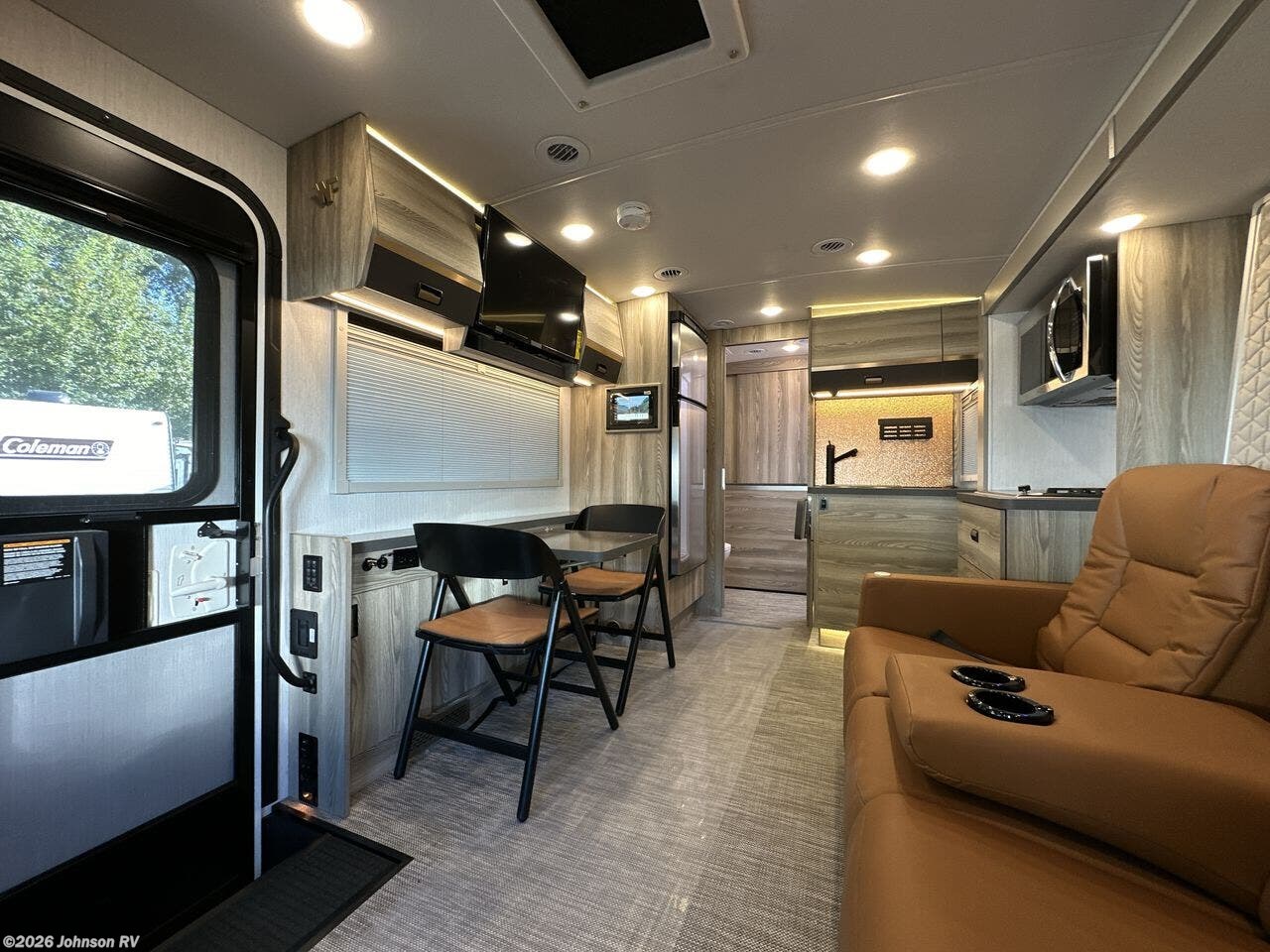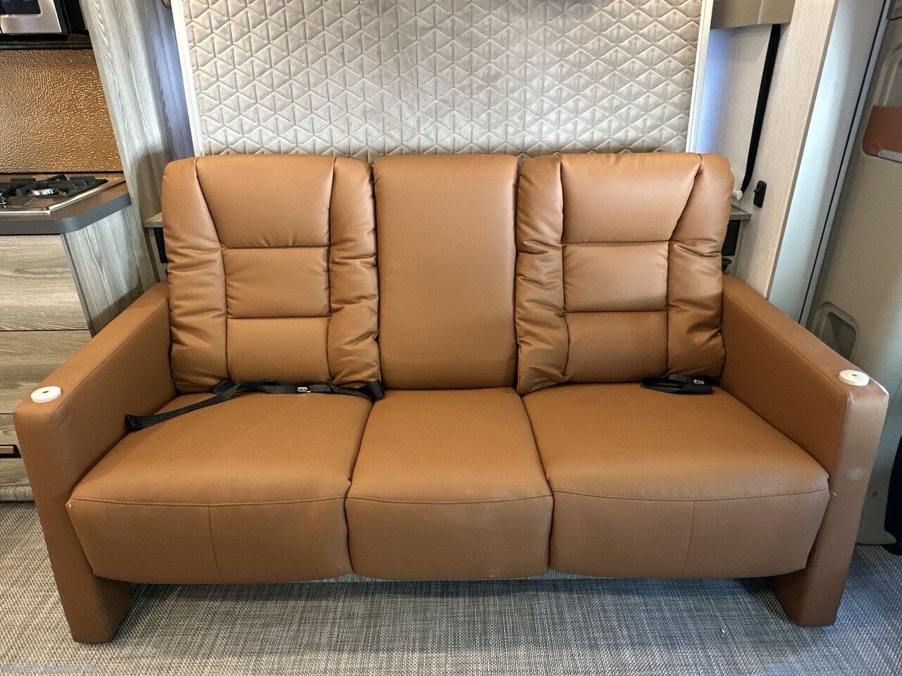 The 2025 Winnebago Navion 24T redefines the Class C motorhome experience by combining luxury, functionality, and advanced technology in a compact design. Built on the Mercedes-Benz Sprinter 3500 chassis and powered by a 2.0L high-output turbo-diesel 4-cylinder engine, this motorhome delivers 208 horsepower and 332 lb-ft of torque, ensuring a smooth and efficient drive. Inside, the Navion 24T offers a thoughtfully designed living space featuring a Murphy+ bed that transforms into a comfortable seating area during the day, a fully equipped kitchen with a 10.0 cu. ft. compressor-driven refrigerator, and a rear bathroom with a spacious 30" x 34" shower . The interior is enhanced with dimmable LED lighting, blackout roller shades, and a 32" LED HDTV, providing a cozy and modern ambiance for your travels. With its combination of compact design, luxurious amenities, and reliable performance, the 2025 Winnebago Navion 24T is an excellent choice for travelers seeking both comfort and convenience on the open road.