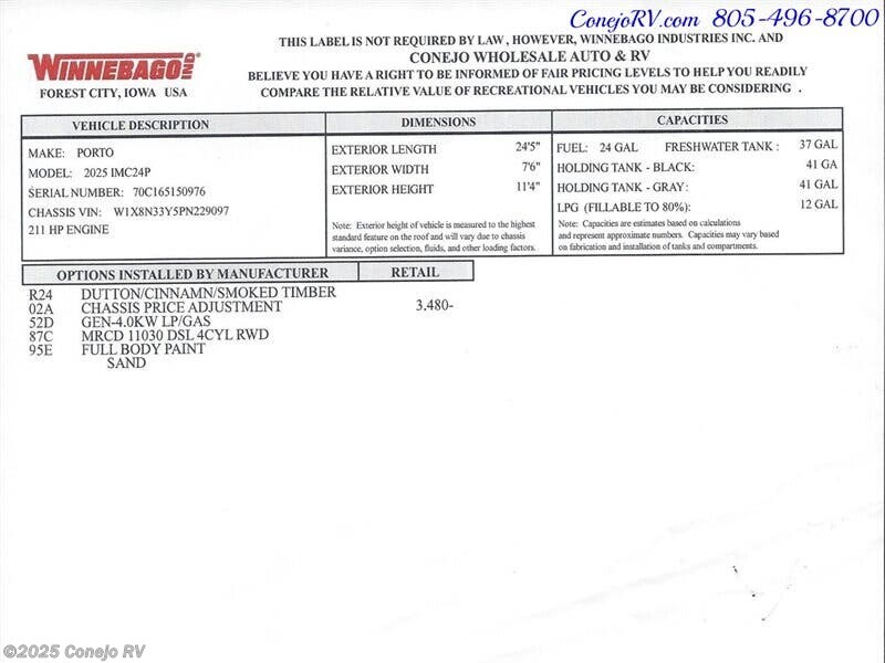Request More Info on this 2025 Winnebago Porto 24P Offered for sale by Conejo RV