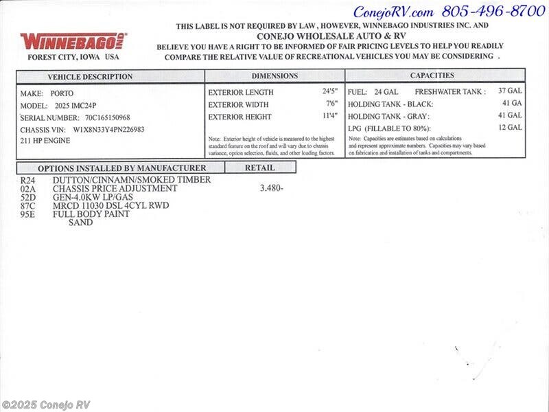 Request More Info on this 2025 Winnebago Porto 24P Offered for sale by Conejo RV