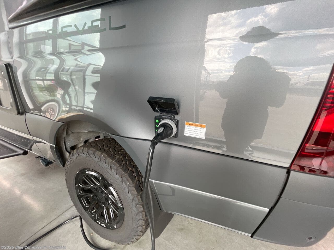 The Revel Class B diesel motorhome allows you to venture off-road thanks to the AWD Sprinter chassis with 2.0L high-output turbo-diesel 4-cylinder under the hood. The Winnebago Power MAX system (8.4kWh Lithionics lithium-ion battery with dual alternator charging capability) and Power Hub Pro which is an exclusive 5-in1 system that delivers off-grid power like nothing before allowing you to stay off-grid for up to 7 days . The interior provides a comfortable and relaxing space featuring modern decor including an updated galley with compression-latch cabinets, a new wall-mounted table, a semi-private wet bath, plus a power lift bed with WinnSleep® mattress technology, and the gear garage below the bed features (6) L-track bases for secure and flexible storage, plus cabinet storage and more. For the freedom to explore in any season, start treating roads like suggestions, and choose this Revel to get you anywhere you dream to go today!