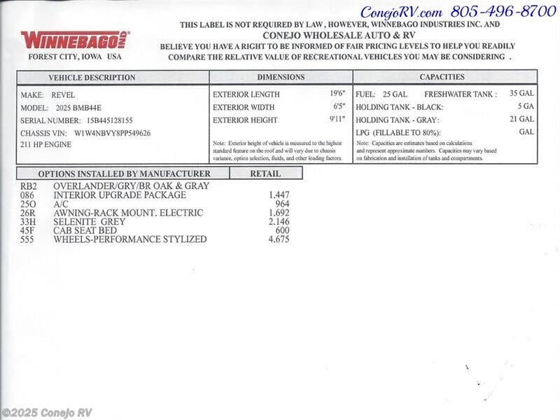 Request More Info on this 2025 Winnebago Revel 44E Offered for sale by Conejo RV