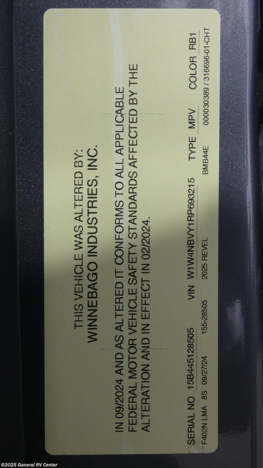 Request More Info on this 2025 Winnebago Revel 44E Offered for sale by General RV Center