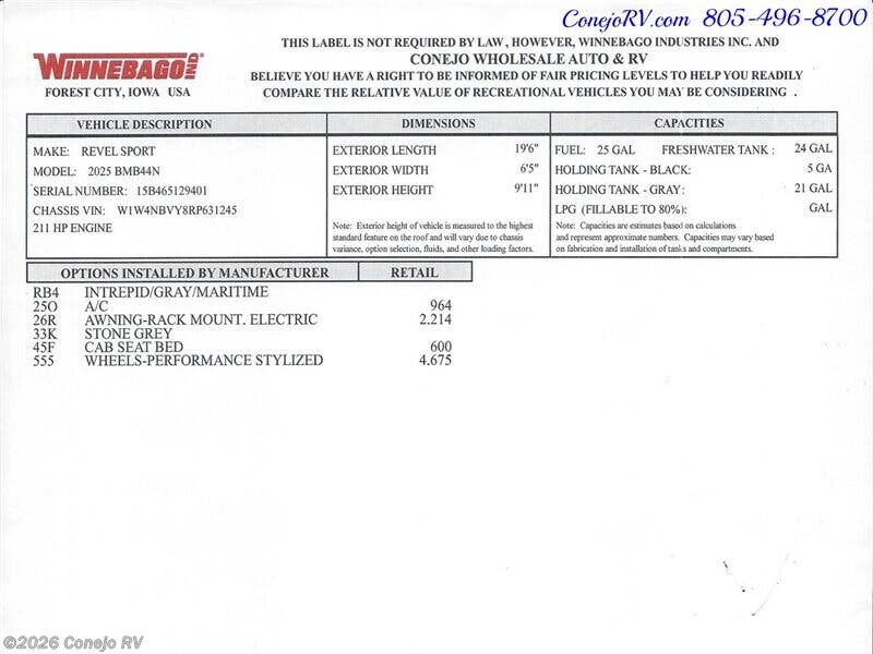 Looking to buy a 2025 Winnebago Revel Sport Class B RV?