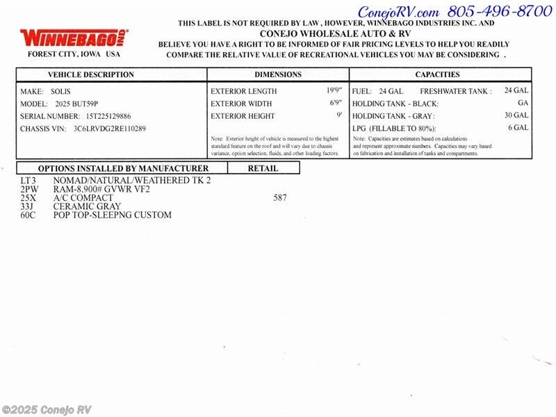 Request More Info on this 2025 Winnebago Solis 59P Offered for sale by Conejo RV