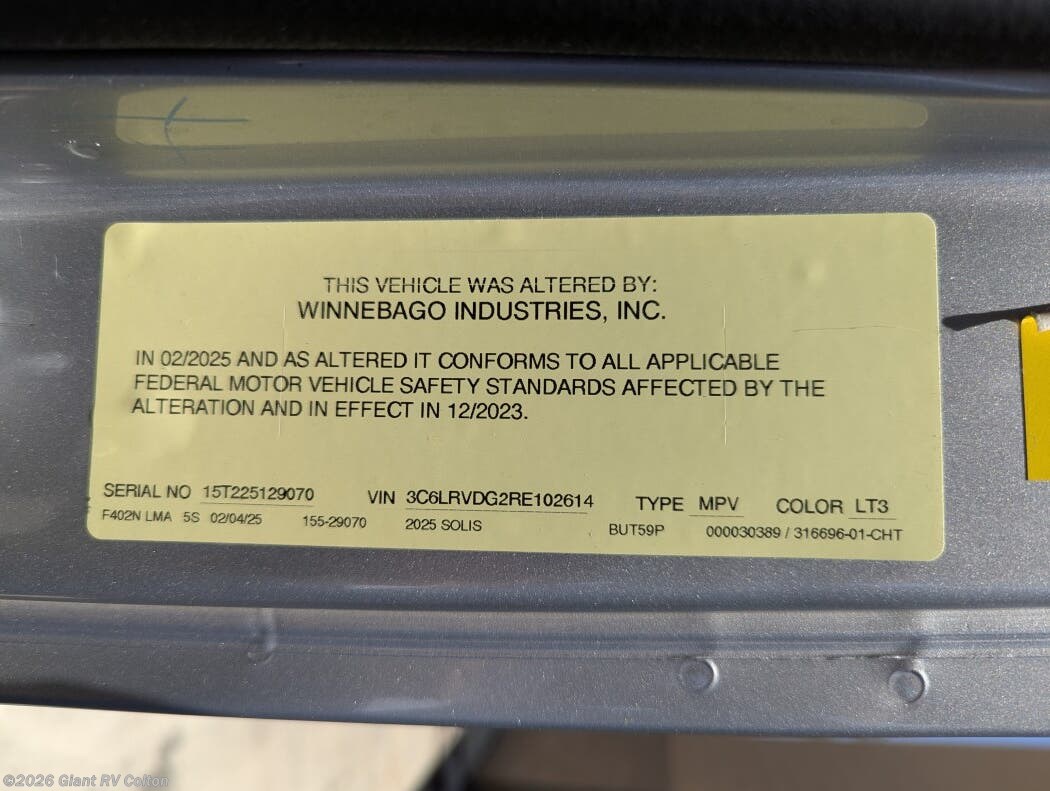 Request More Info on this 2025 Winnebago Solis 59P Offered for sale by Giant RV