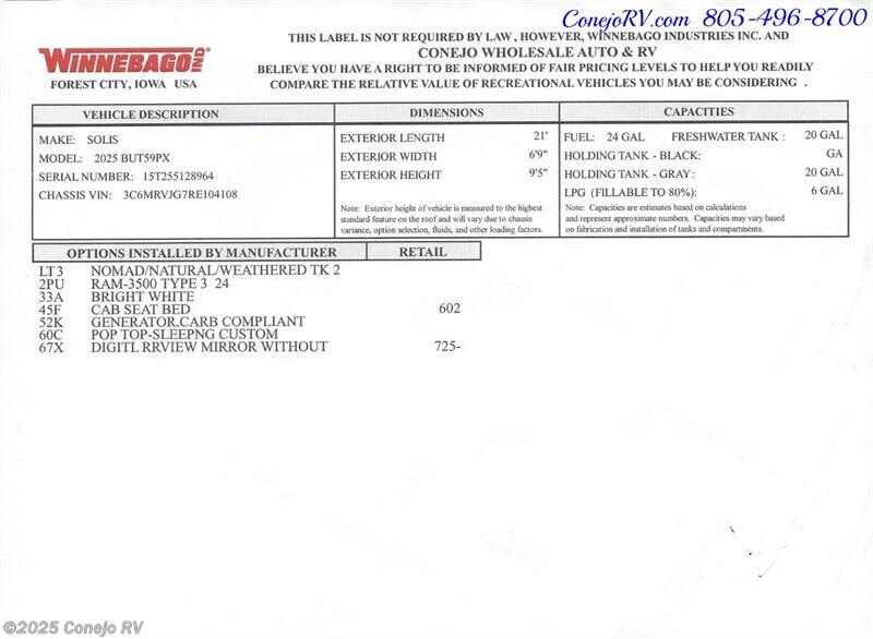 Request More Info on this 2025 Winnebago Solis 59PX Offered for sale by Conejo RV