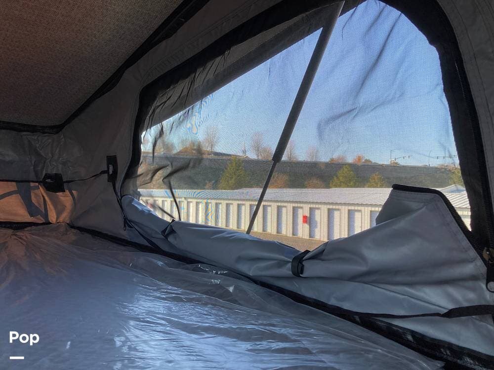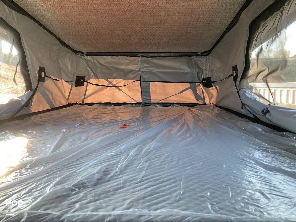 Above is the pop-up sleeping area with a removable ladder for access. The side-screened windows provide plenty of ventilation and have zip-up blackout covers for sleeping and privacy.