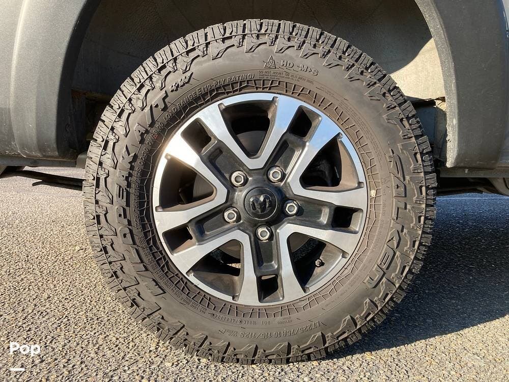 A 2-inch lift kit has raised the suspension. The sellers added a hinged rear door spare tire rack, five off-road tires, custom floor covers, and blackout window shades.