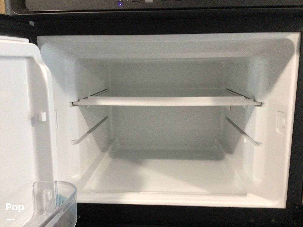 The galley is equipped for any meal, featuring Corian countertops, a large 10 cu. ft. 12VDC stainless steel refrigerator, and 3-burner range top with a glass cover, and a microwave. This will make the most discerning chef happy!
