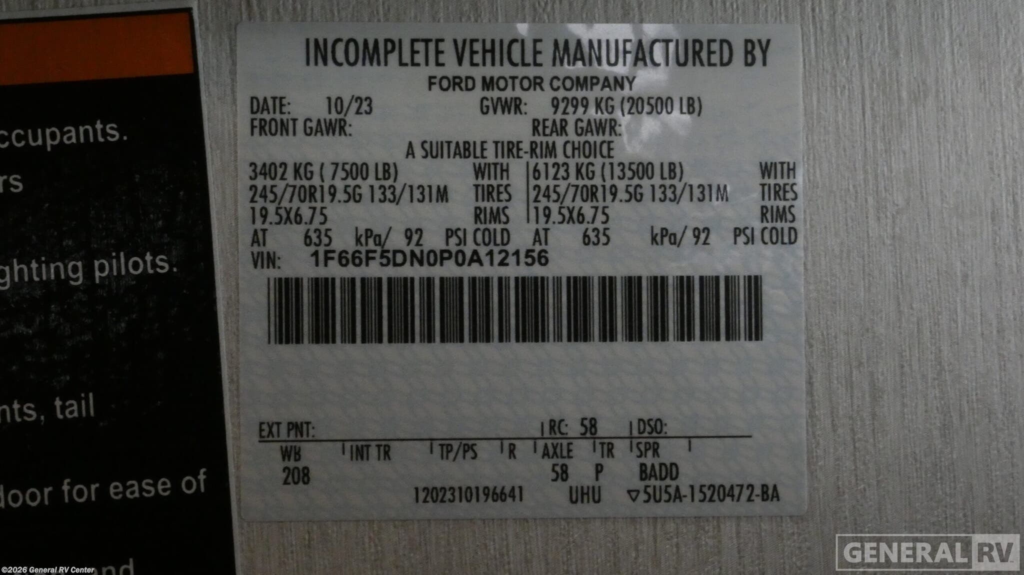 - VIN1F66F5DN0P0A12156