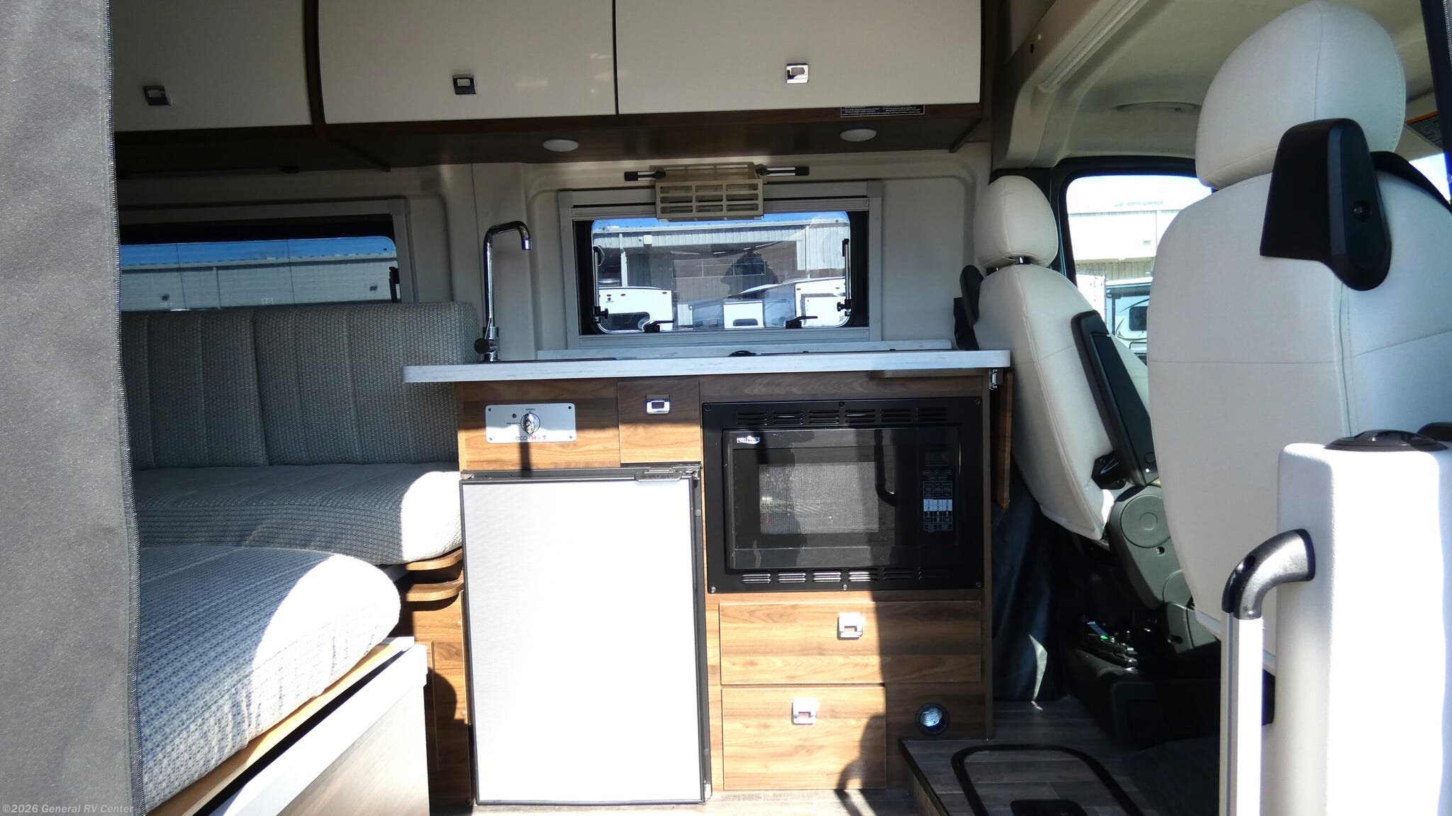 Experience the ultimate in versatility and comfort with the 2025 Winnebago Travato 59K. This compact yet spacious RV is designed for those who crave adventure without sacrificing the comforts of home. The innovative floorplan features a front kitchen equipped with a two-burner cooktop and convection cooking, perfect for preparing your favorite meals on the road. The center living area offers cozy seating that transforms into sleeping space, ensuring restful nights under the stars. At the rear, you'll find a convenient bathroom with a shower curtain for privacy, making it easy to freshen up after a day of exploration. With a powered retractable awning extending 13 feet, you can enjoy the great outdoors while staying shaded and comfortable. Built on the robust ProMaster 3500 chassis and powered by a Pentastar VVT V6 engine, the Travato 59K delivers both reliability and performance. Whether you're navigating city streets or heading off the beaten path, this RV is your perfect travel companion. For more details, visit your nearest General RV dealership.