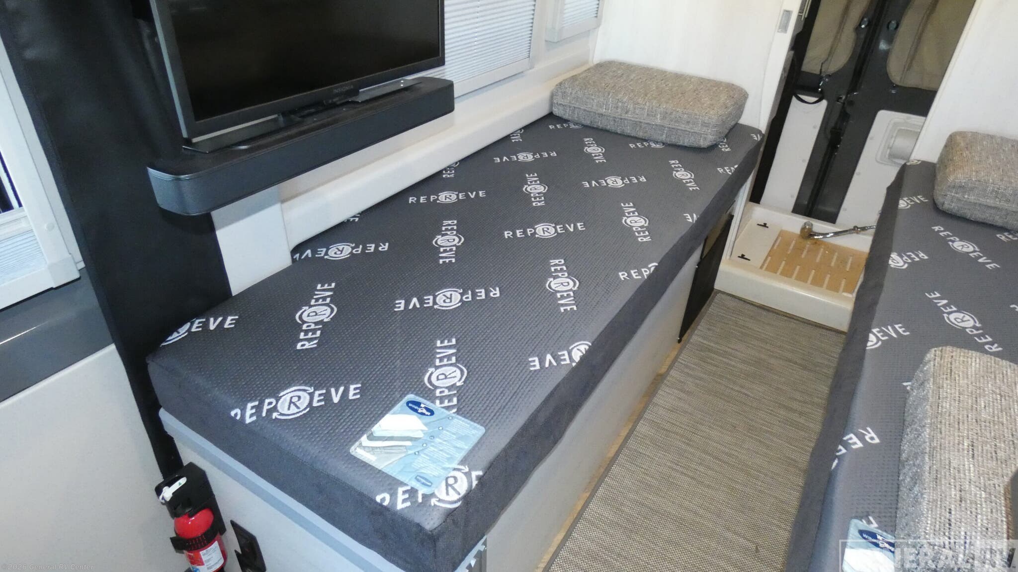 **Winnebago Travato Class B gas motorhome 59K highlights:** - Twin Beds - Wet Bath - Below Floor Storage - 24" HDTV Start traveling in luxury with this motorhome! After a long day of traveling, you can rest up on one of the two twin beds which can be converted into a 74" x 76" bed with the flex bed system. Freshen up in the rear 25" x 43" wet bath with a fold down lavatory sink and a wardrobe to store your clothes and towels, plus sliding doors for privacy. You don't have to eat fast food while on the road either thanks to the two burner range top with a glass cover and heat shield and single door 4.3 cu. ft. compressor-driven refrigerator/freezer, plus you have a flip-up countertop extension to make your meal prepping easier. The 2,800-watt gas generator will come in handy when you want to go off-the grid! Each one of these Winnebago Travato Class B gas motorhomes are perfect for adventure seekers of all types! The rear annex extends your living space and gives you the versatility of hanging wet gear, using it as an outdoor shower, or an impromptu awning. They are powered by a Ram ProMaster 3.6L V6 gas engine with 280 HP and a 9-speed automatic transmission, and include a radio/rearview monitor system with navigation, USB ports, and more to make the drive easier than ever. The superior craftsmanship consists of a Truma Combi Eco Plus heating system that can run off of propane or electricity, aluminum running boards with logoed tread, ground-effect lighting and pet loop attachment so even your furry friends can come along. You will also find RAM Tough-Track Mounts throughout for your gear, tinted coach windows and blackout cassette shades for added privacy, plus a 24" HDTV and Bluetooth soundbar to ensure you'll never go bored!