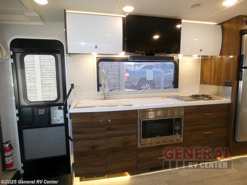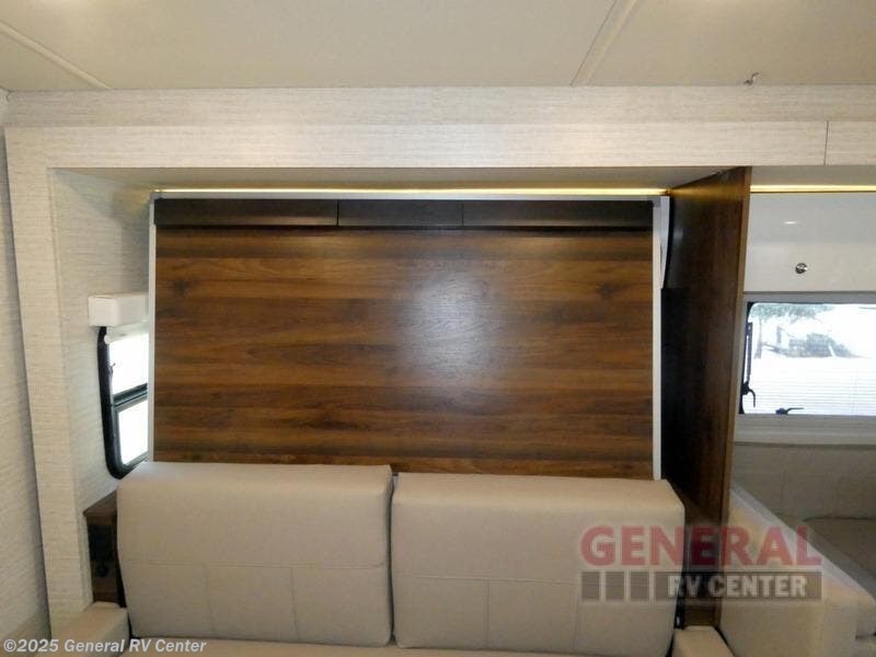 A couple or family will enjoy the look of the interior each time they take this View Class C diesel motorhome on the road. You will be able to easily set up the queen Murphy+ bed when it's time for bedtime while the kids sleep on the bunk above the cab or the U-shaped dinette. You might like to add the theater seating option with swivel tables if you don't need that extra sleeping space. Everyone can get cleaned up in the full rear bathroom that has a space-saving sliding door before making meals with full kitchen amenities including a convection microwave/oven.