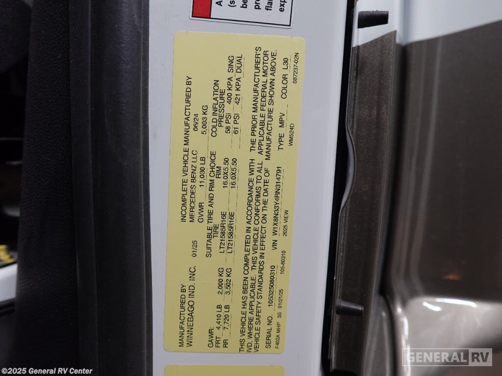 Experience the open road like never before with the 2025 Winnebago View 24D. This sleek and stylish motorhome is built on the robust Mercedes-Benz Sprinter 3500 chassis, powered by a dynamic I4 diesel engine, ensuring a smooth and powerful ride. With a length of 25.5 feet, this RV is compact enough for easy maneuverability yet spacious enough to accommodate up to six sleepers comfortably. The innovative floorplan features a versatile Murphy bed that easily converts the living area into a cozy bedroom, while the U-shaped dinette provides a perfect spot for meals and gatherings. Step inside, and you'll be greeted by a thoughtfully designed interior that boasts a center kitchen equipped with a full-size electric refrigerator and a two-burner cooktop, perfect for preparing delicious meals on the go. The front living area is enhanced by a cabover bunk, offering additional sleeping space or a cozy nook for relaxation. The rear bath, complete with a plastic/glass shower, ensures you have all the comforts of home no matter where your travels take you. Enjoy the outdoors with the 16-foot powered retractable awning, ideal for creating a shaded retreat on sunny days. Whether you're embarking on a weekend getaway or a cross-country adventure, the Winnebago View 24D promises a journey filled with comfort and style. For more information, visit your nearest General RV dealership.