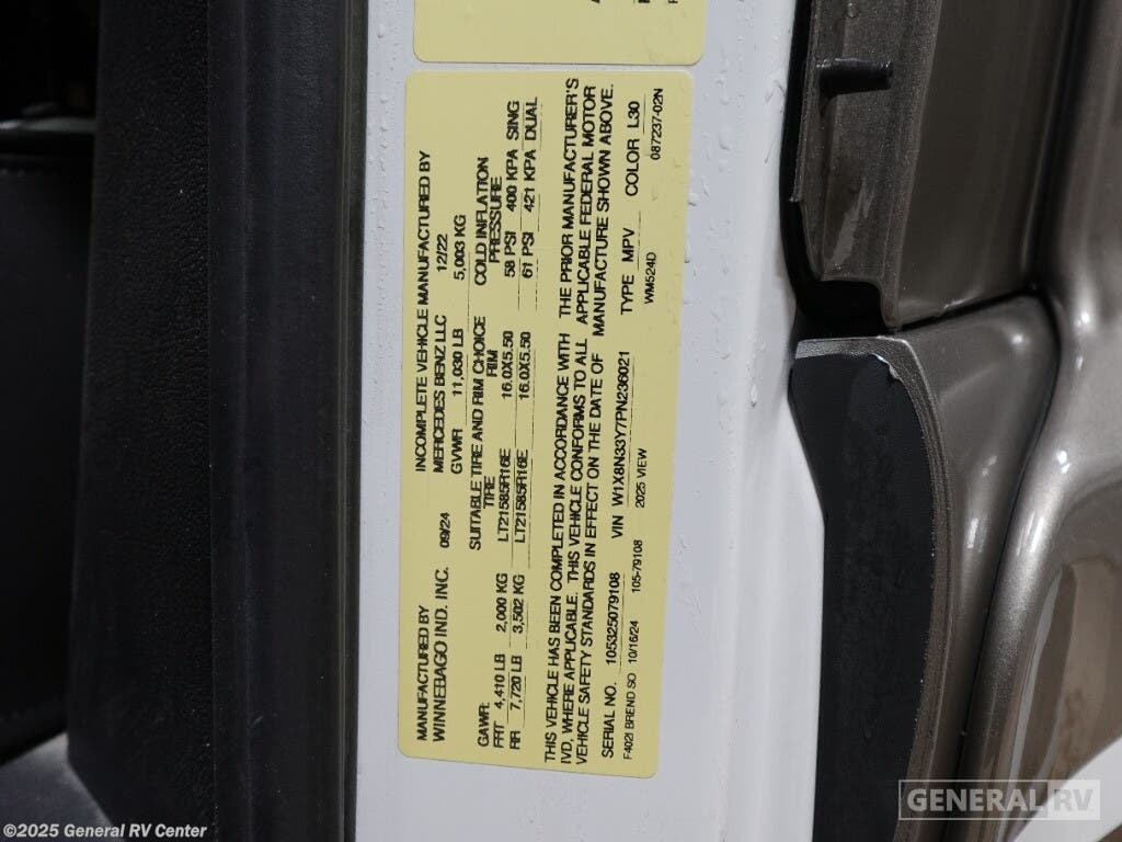 Experience the open road like never before with the 2025 Winnebago View 24D. This sleek and stylish motorhome is built on the robust Mercedes-Benz Sprinter 3500 chassis, powered by a dynamic I4 diesel engine, ensuring a smooth and powerful ride. With a length of 25.5 feet, this RV is compact enough for easy maneuverability yet spacious enough to accommodate up to six sleepers comfortably. The innovative floorplan features a versatile Murphy bed that easily converts the living area into a cozy bedroom, while the U-shaped dinette provides a perfect spot for meals and gatherings. Step inside, and you'll be greeted by a thoughtfully designed interior that boasts a center kitchen equipped with a full-size electric refrigerator and a two-burner cooktop, perfect for preparing delicious meals on the go. The front living area is enhanced by a cabover bunk, offering additional sleeping space or a cozy nook for relaxation. The rear bath, complete with a plastic/glass shower, ensures you have all the comforts of home no matter where your travels take you. Enjoy the outdoors with the 16-foot powered retractable awning, ideal for creating a shaded retreat on sunny days. Whether you're embarking on a weekend getaway or a cross-country adventure, the Winnebago View 24D promises a journey filled with comfort and style. For more information, visit your nearest General RV dealership.