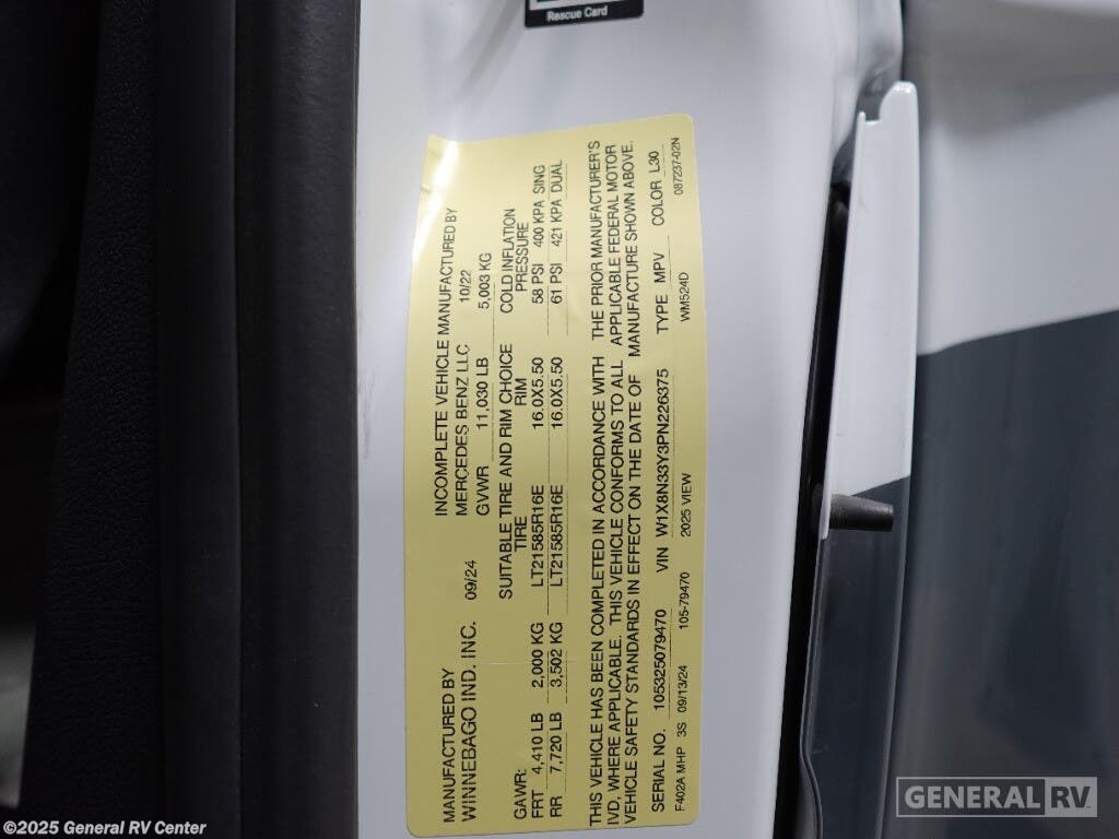 Experience the open road like never before with the 2025 Winnebago View 24D. This sleek and stylish motorhome is built on the robust Mercedes-Benz Sprinter 3500 chassis, powered by a dynamic I4 diesel engine, ensuring a smooth and powerful ride. With a length of 25.5 feet, this RV is compact enough for easy maneuverability yet spacious enough to accommodate up to six sleepers comfortably. The innovative floorplan features a versatile Murphy bed that easily converts the living area into a cozy bedroom, while the U-shaped dinette provides a perfect spot for meals and gatherings. Step inside, and you'll be greeted by a thoughtfully designed interior that boasts a center kitchen equipped with a full-size electric refrigerator and a two-burner cooktop, perfect for preparing delicious meals on the go. The front living area is enhanced by a cabover bunk, offering additional sleeping space or a cozy nook for relaxation. The rear bath, complete with a plastic/glass shower, ensures you have all the comforts of home no matter where your travels take you. Enjoy the outdoors with the 16-foot powered retractable awning, ideal for creating a shaded retreat on sunny days. Whether you're embarking on a weekend getaway or a cross-country adventure, the Winnebago View 24D promises a journey filled with comfort and style. For more information, visit your nearest General RV dealership.