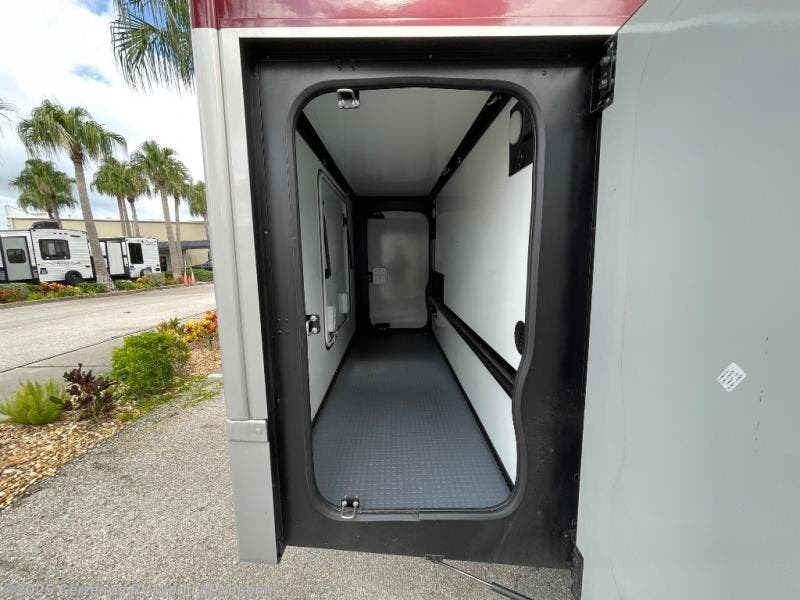The perfect couples coach or for a family of three or four! You will be able to easily set up the queen Murphy+ bed when it's time for bedtime while the kids or your guests sleep on the 49" x 75" cabover bunk. You can also choose the optional low profile front cap with storage if you do not need the added sleeping space. An optional 3800W RVMP Flex Power generator is also available with this model. Everyone can get cleaned up in the full bathroom that has a space-saving sliding door and large wardrobe along the very rear that features a gear garage below. Create yummy meals and snacks using the kitchen appliances and the flip-up counter, then dine at the fold-down table with chairs, or eat seated on the theater seating with lap tables nearby on either side.