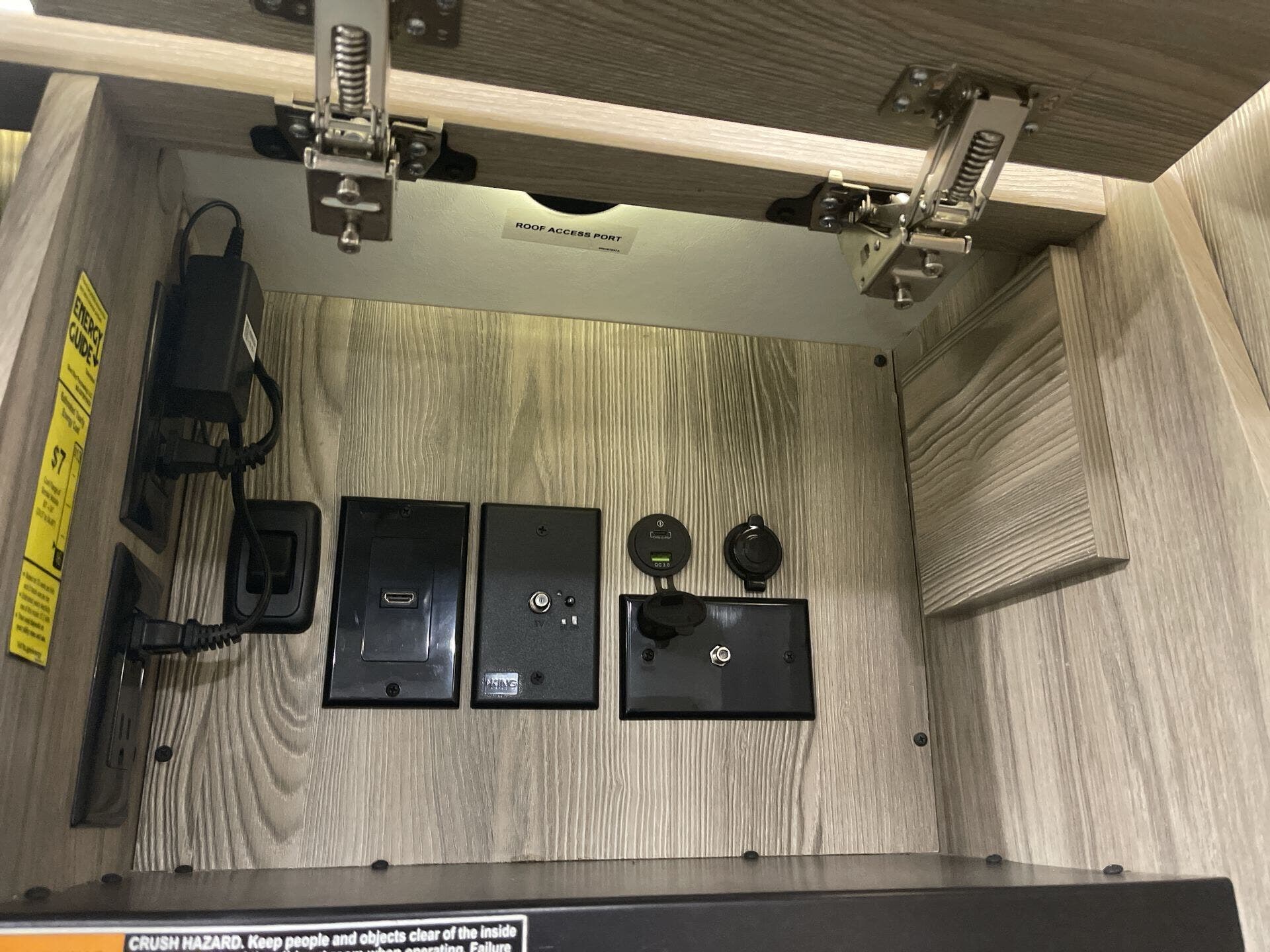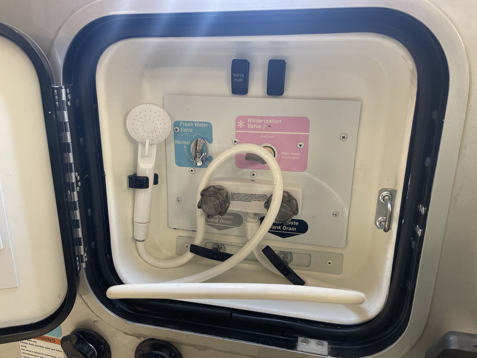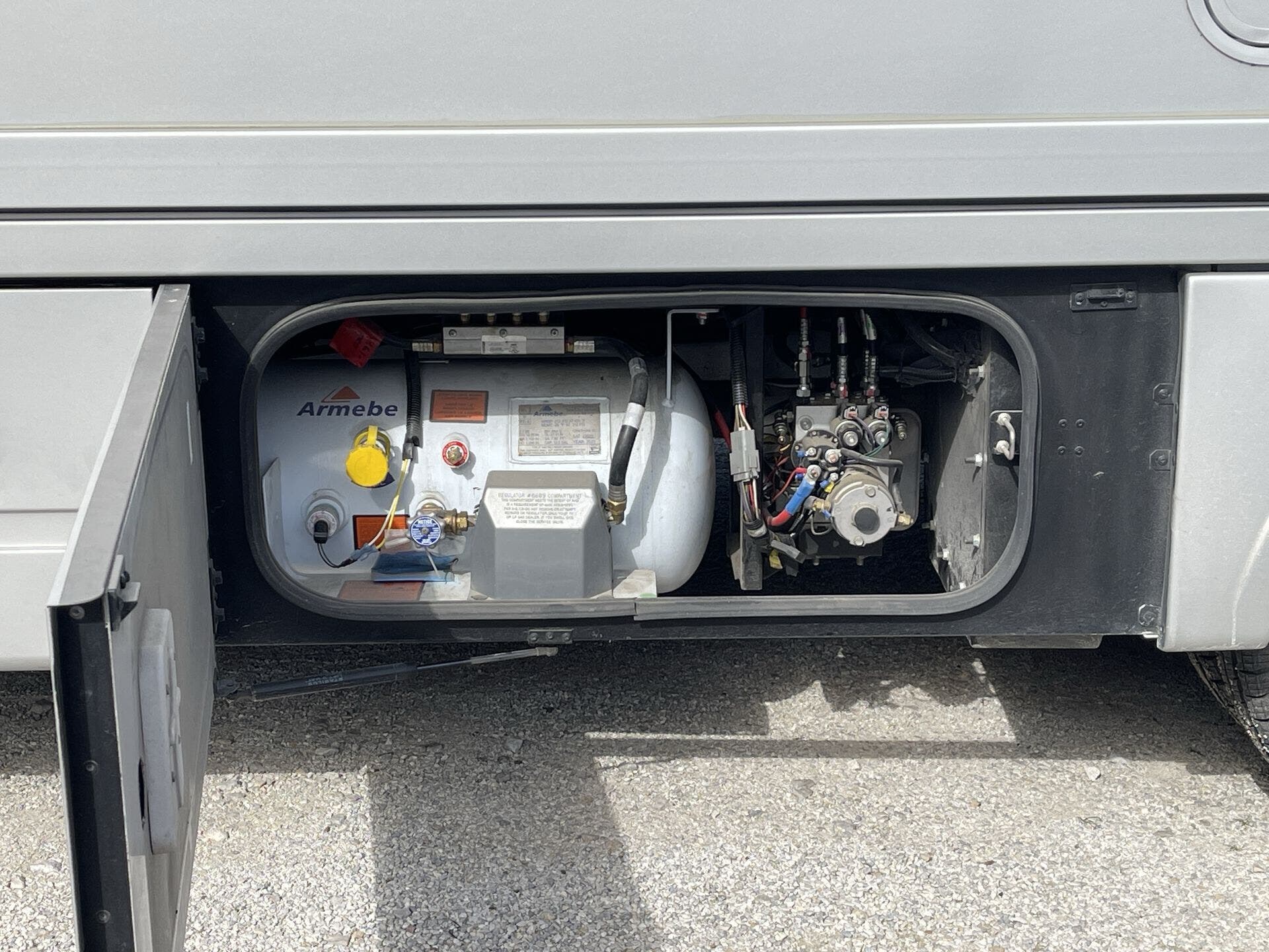 Awning, Backup Monitor, External Shower, Hitch, Ladder, Leveling Jacks, Luggage Rack, Power Entrance Step, Power Roof Vent, Skylight, Slideout, Slide-out Awning, Spare Tire Kit -