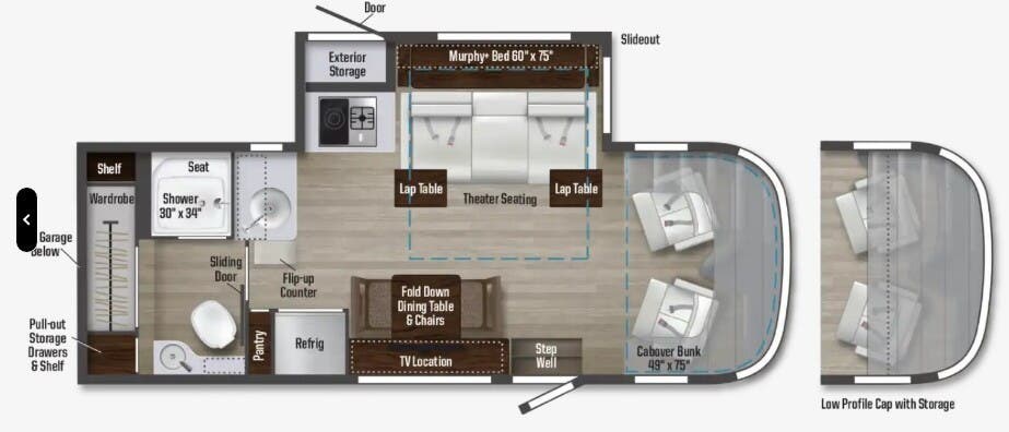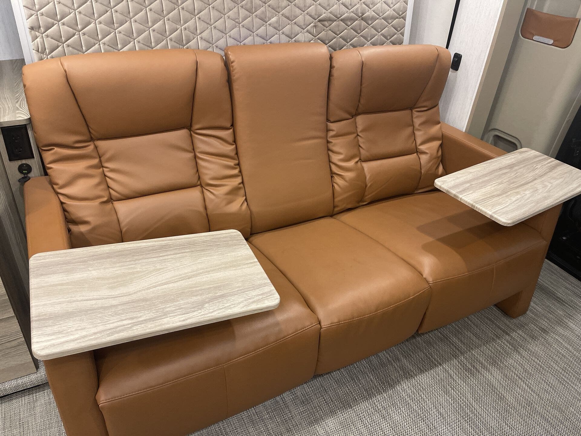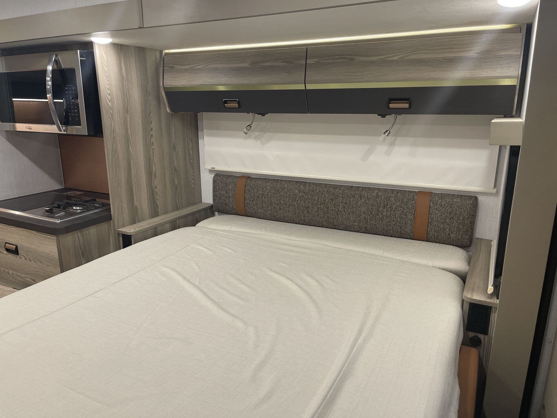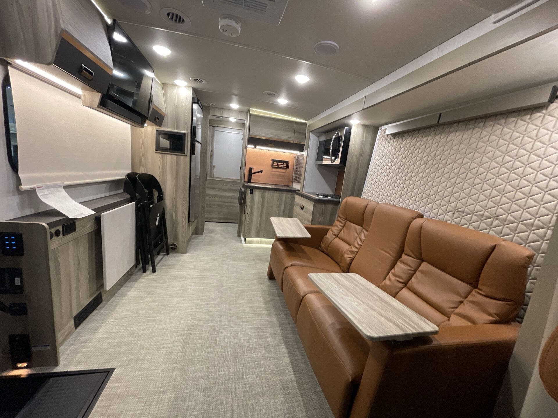 The exterior boasts sleek lines and aerodynamic contours, enhancing fuel efficiency without compromising on style. Integrated awnings and outdoor entertainment options make outdoor living enjoyable and effortless. Advanced safety features and intuitive technology ensure peace of mind on the road.
