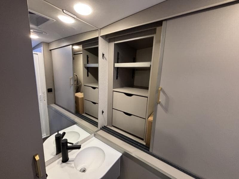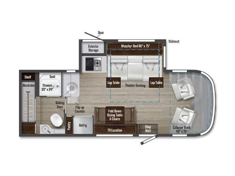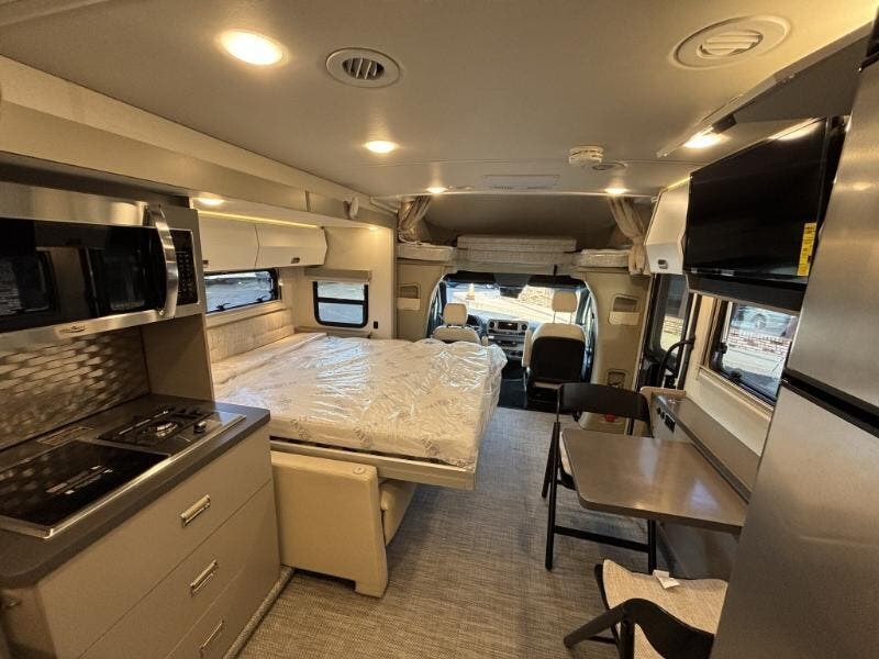 Features Include: 250-Amp Alternator, Active Brake Assist, Lane Keeping Assist, Attention Assist, Hill Start Assist, Crosswind Assist, Power Windows, Sunvisors, Tilt Wheel, Stepwell Light, Soft Vinyl Ceiling, Vinyl Flooring, Tinted Glass Windows, Dining, Pantry (24D 24J), Laminate Countertops, Galley Mini Blinds, 32-inch HDTV, Corner Bed (24J), Charging Station, Wardrobe Cabinet, Bathroom, Medicine Cabinet, Shower Skylight, (24R 24T), Expansion Plug, Battery Pack Heating, Bluetooth Control, Expansion Plug, 3.8 LP Generator, 30-AmpService Cord, 45-Amp Converter, 15k AC Heat Pump, Water Heater Bypass