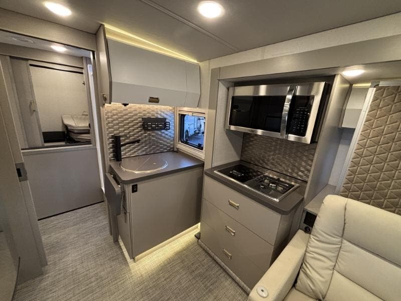 The 2025 Winnebago View 24T is a state-of-the-art Class C motorhome designed for those who crave adventure without sacrificing comfort. This new model is built on the reliable Mercedes-Benz RWD Sprinter chassis, powered by a robust 2.0L high-output 4-cylinder turbo diesel engine. The vehicle features a 9-speed overdrive automatic transmission, ensuring smooth and efficient driving experiences. With a 250-amp alternator and hydraulic brakes with ABS, the View 24T is engineered for both power and safety. The exterior of the Winnebago View is both functional and stylish. It includes LED high-performance headlights, front and rear mud flaps, and stylized aluminum wheels. The vehicle is equipped with a 5000-pound hitch and a 7-pin plug, making it ready for towing. Safety features are abundant, with active brake assist, lane-keeping assist, attention assist, hill start assist, and crosswind assist. The auto headlamps with high beam assist and rain sensor wet wiper system add to the convenience and safety of driving in various conditions. The Distronic Plus adaptive cruise control further enhances the driving experience by maintaining a safe distance from other vehicles. Inside the cab, the Winnebago View offers a range of features designed for comfort and convenience. The overhead bunk with a power roof vent, power door locks with remote, and power windows are just the beginning. The cab also includes folding windshield and cab blinds, sun visors, and automatic climate control. The heated power-adjustable memory seats, leather-wrapped steering wheel, and power assist steering with tilt wheel ensure a comfortable driving experience. The MBUX infotainment system with a navigation touchscreen, Apple CarPlay, Android Auto, SiriusXM, and the Mercedes ME Connect app keep you connected and entertained on the road. The living spaces in the Winnebago View are designed for relaxation and functionality. The power awning with LED lights and Bluetooth control, automatic entry door step, and stepwell light make outdoor living easy and enjoyable. Inside, you'll find a soft vinyl ceiling, vinyl flooring, tinted glass windows, and MCD solar blackout roller shades. Cabinet accent lighting and lighted soft-close drawers add a touch of elegance to the interior. The dining area features laminate countertops, a pantry, galley mini blinds, and a stainless steel sink with covers. The kitchen is equipped with a cold water filtration system, a 12v 10-cubic-foot refrigerator, a 2-burner induction and LP cooktop, and a convection microwave with touch control. For entertainment, the Winnebago View includes a systems monitor panel, LP CO and smoke detectors, 110v and 12v USB charging stations, an amplified digital HDTV antenna, exterior antenna jack, cable TV and satellite hookups, a 32-inch HDTV, and outdoor speakers. Sleeping arrangements are versatile, with a queen Murphy bed (60x75) in the 24T model, ensuring a restful night's sleep. The vehicle also includes a wardrobe cabinet and a 24-inch LED HDTV for added convenience. The bathroom is equipped with a medicine cabinet, Oxygenics flexible showerhead, self-cleaning retractable shower screen, shower skylight, and a composite toilet. The power vent with a rain cover ensures proper ventilation. Mechanically, the Winnebago View is equipped with two 120w solar panels with an expansion plug, a 12v 320Ah Lithionics lithium battery with battery pack heating and Bluetooth control, and a dedicated 280-amp 2nd engine alternator. The vehicle also includes a 3.8 LP generator with an auto transfer switch, solar charger with controller, battery disconnect switch, automatic dual battery charger, 30-amp service cord, 45-amp converter, and a 2000w pure sine wave inverter. The 15k AC heat pump and 25k low profile ducted furnace ensure comfort in any climate. The Truma AquaGo Comfort Plus tankless water heater, water heater bypass, black tank flush system, and exterior wash station add to the convenience and functionality of this impressive motorhome. Overall, the 2025 Winnebago View 24T is a luxurious and well-equipped motorhome, perfect for those who want to explore the open road with all the comforts of home. ???