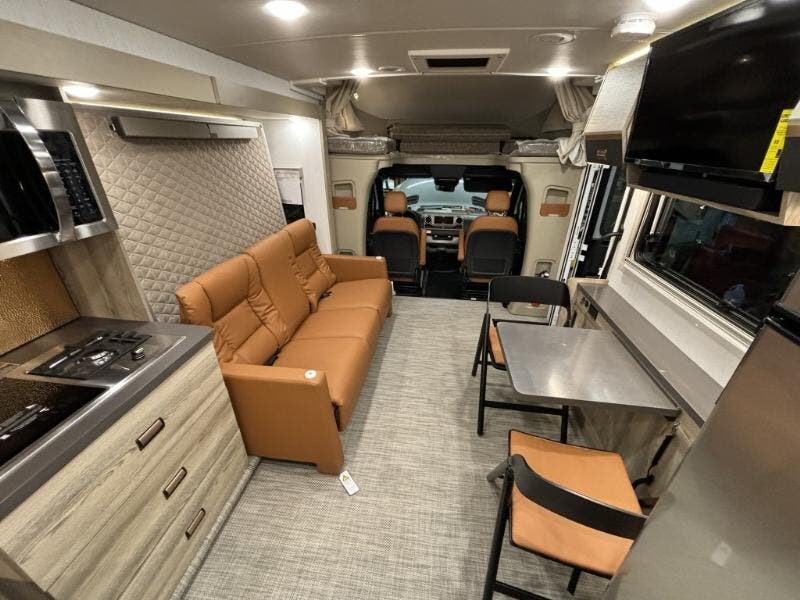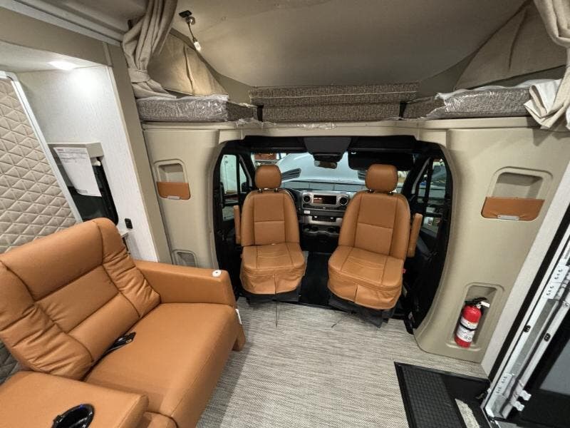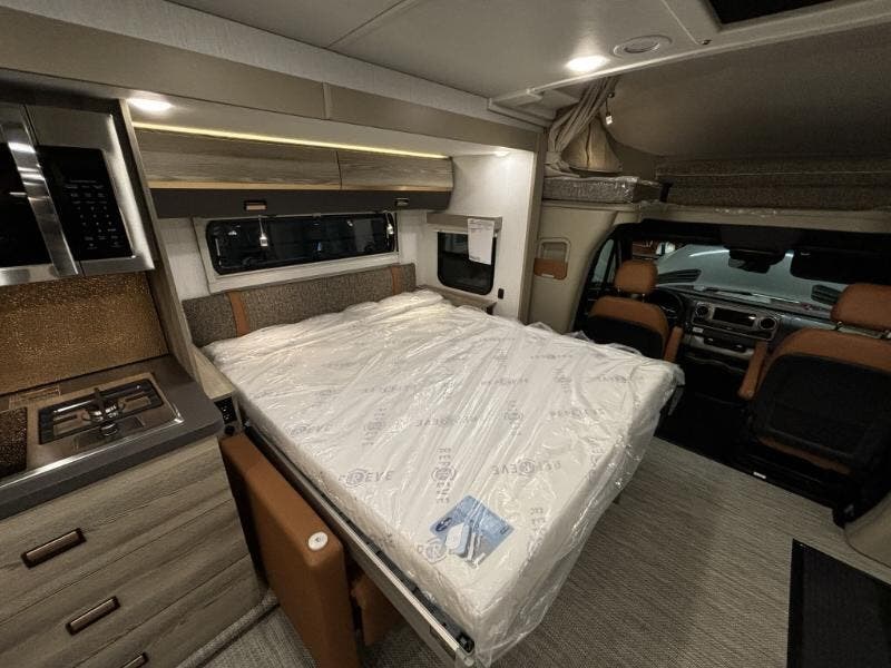 The 2025 Winnebago View 24T is a state-of-the-art Class C RV designed to offer luxury and comfort on the road. This new model is built on the reliable Mercedes-Benz RWD Sprinter Chassis, featuring a robust 2.0L High Output 4-Cylinder Turbo Diesel engine paired with a 9-speed overdrive automatic transmission. This combination ensures a smooth and efficient driving experience, enhanced by advanced safety features such as Active Brake Assist, Lane Keeping Assist, Attention Assist, Hill Start Assist, and Crosswind Assist. The vehicle also includes adaptive ESP technology and hydraulic brakes with ABS for added safety and control. The exterior of the Winnebago View is equipped with LED high-performance headlights, front and rear mud flaps, and stylized aluminum wheels. A 5000# hitch with a 7-pin plug is included for towing needs. The auto headlamps with high beam assist and rain sensor wet wiper system ensure optimal visibility in various weather conditions. The vehicle's exterior is complemented by a power awning with LED lights and Bluetooth control, providing a perfect outdoor relaxation space. Inside the cab, the Winnebago View offers a range of features for driver and passenger comfort. These include power door locks with remote, power windows, folding windshield and cab blinds, sunvisors, and automatic climate control. The heated power-adjustable memory seats and leather-wrapped steering wheel add a touch of luxury. The MBUX infotainment system with a navigation touchscreen, Apple CarPlay, Android Auto, SiriusXM, and the Mercedes ME Connect app ensure connectivity and entertainment on the go. The living space is designed for comfort and functionality, featuring a soft vinyl ceiling, vinyl flooring, tinted glass windows, and MCD solar blackout roller shades. The cabinetry is accentuated with lighting, and the soft-close drawers are lighted for convenience. The dining area includes laminate countertops, a pantry, galley mini blinds, a stainless steel sink with covers, a cold water filtration system, a 12v 10cf refrigerator, a 2-burner induction and LP cooktop, and a convection microwave with touch control. For entertainment, the RV is equipped with a 32-inch HDTV, outdoor speakers, and various charging stations, including 110v, 12v, and USB options. The sleeping area features a Queen Murphy 60x75 WinnSleep Bed, a charging station, a wardrobe cabinet, and a 24-inch LED HDTV. The bathroom is well-appointed with a medicine cabinet, an Oxygenics flexible showerhead, a self-cleaning retractable shower screen, a shower skylight, and a composite toilet. The mechanical systems of the Winnebago View are designed for efficiency and convenience. It includes two 120w solar panels with an expansion plug, a 12v 320Ah Lithionics lithium battery with heating and Bluetooth control, a 3.8 LP generator with an auto transfer switch, a solar charger with a controller, and a battery disconnect switch. The RV also features a 30-amp service cord, a 45-amp converter, a 2000w pure sine wave inverter, a 15k AC heat pump, a 25k low-profile ducted furnace, a Truma AquaGo Comfort Plus tankless water heater, a water heater bypass, a black tank flush system, and an exterior wash station. Overall, the 2025 Winnebago View 24T is a luxurious and well-equipped RV, perfect for those seeking adventure without compromising on comfort and style. ??