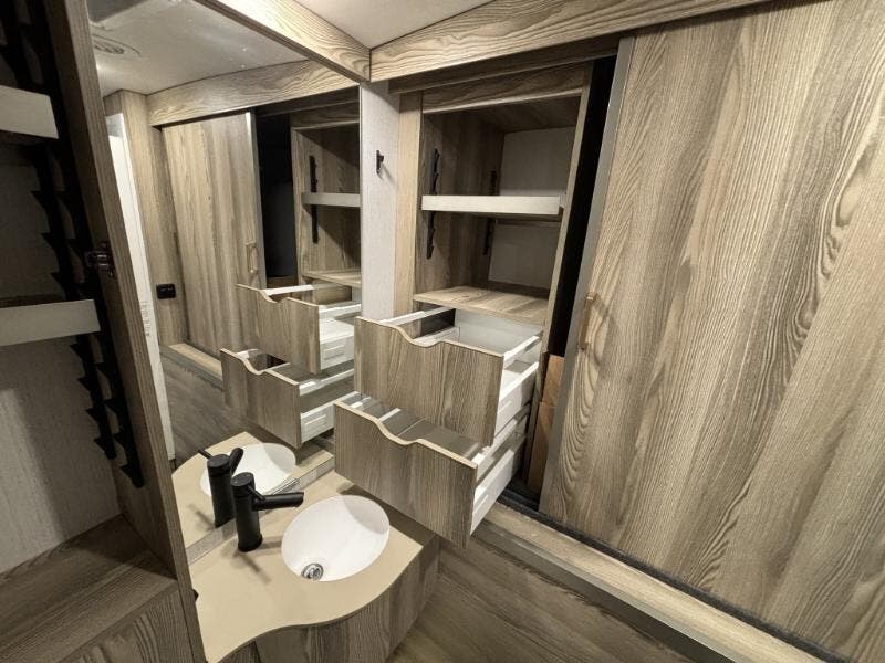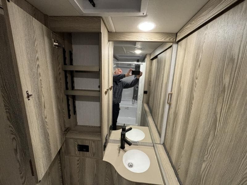 Features Include: 250-Amp Alternator, Active Brake Assist, Lane Keeping Assist, Attention Assist, Hill Start Assist, Crosswind Assist, Power Windows, Sunvisors, Tilt Wheel, Stepwell Light, Soft Vinyl Ceiling, Vinyl Flooring, Tinted Glass Windows, Dining, Pantry (24D 24J), Laminate Countertops, Galley Mini Blinds, 32-inch HDTV, Corner Bed (24J), Charging Station, Wardrobe Cabinet, Bathroom, Medicine Cabinet, Shower Skylight, (24R 24T), Expansion Plug, Battery Pack Heating, Bluetooth Control, Expansion Plug, 3.8 LP Generator, 30-AmpService Cord, 45-Amp Converter, 15k AC Heat Pump, Water Heater Bypass