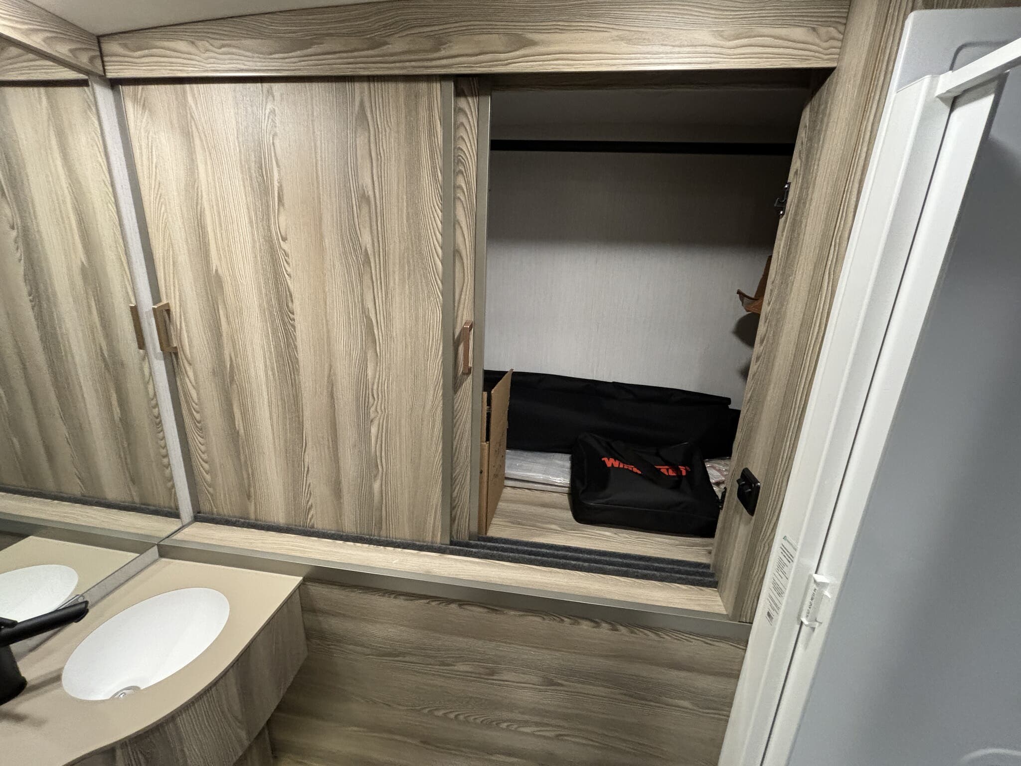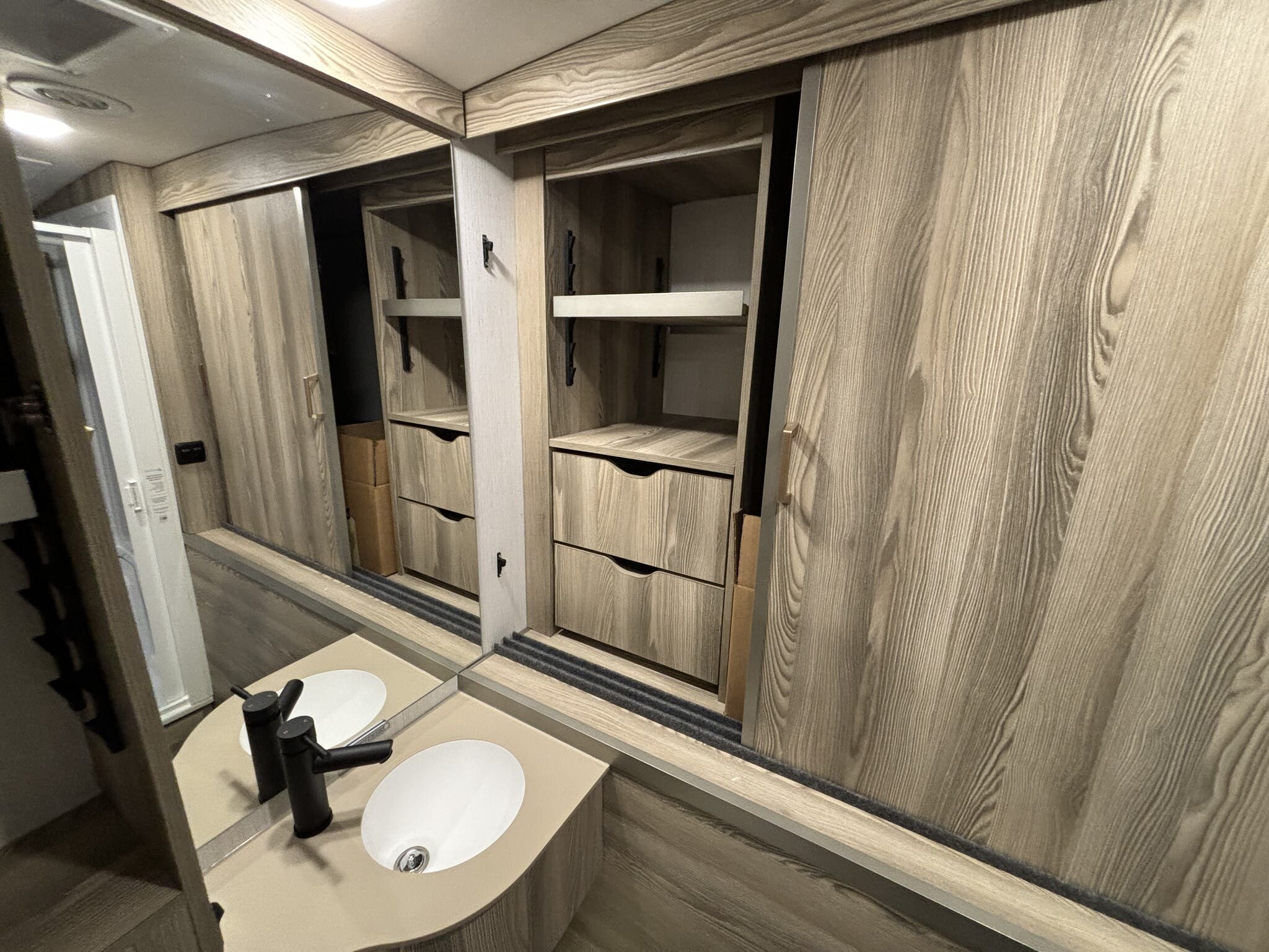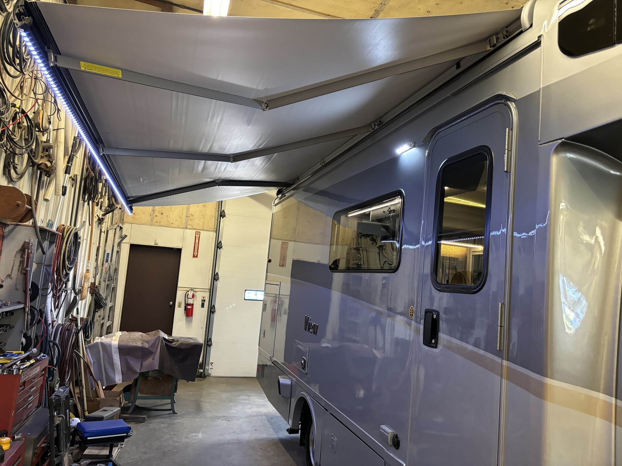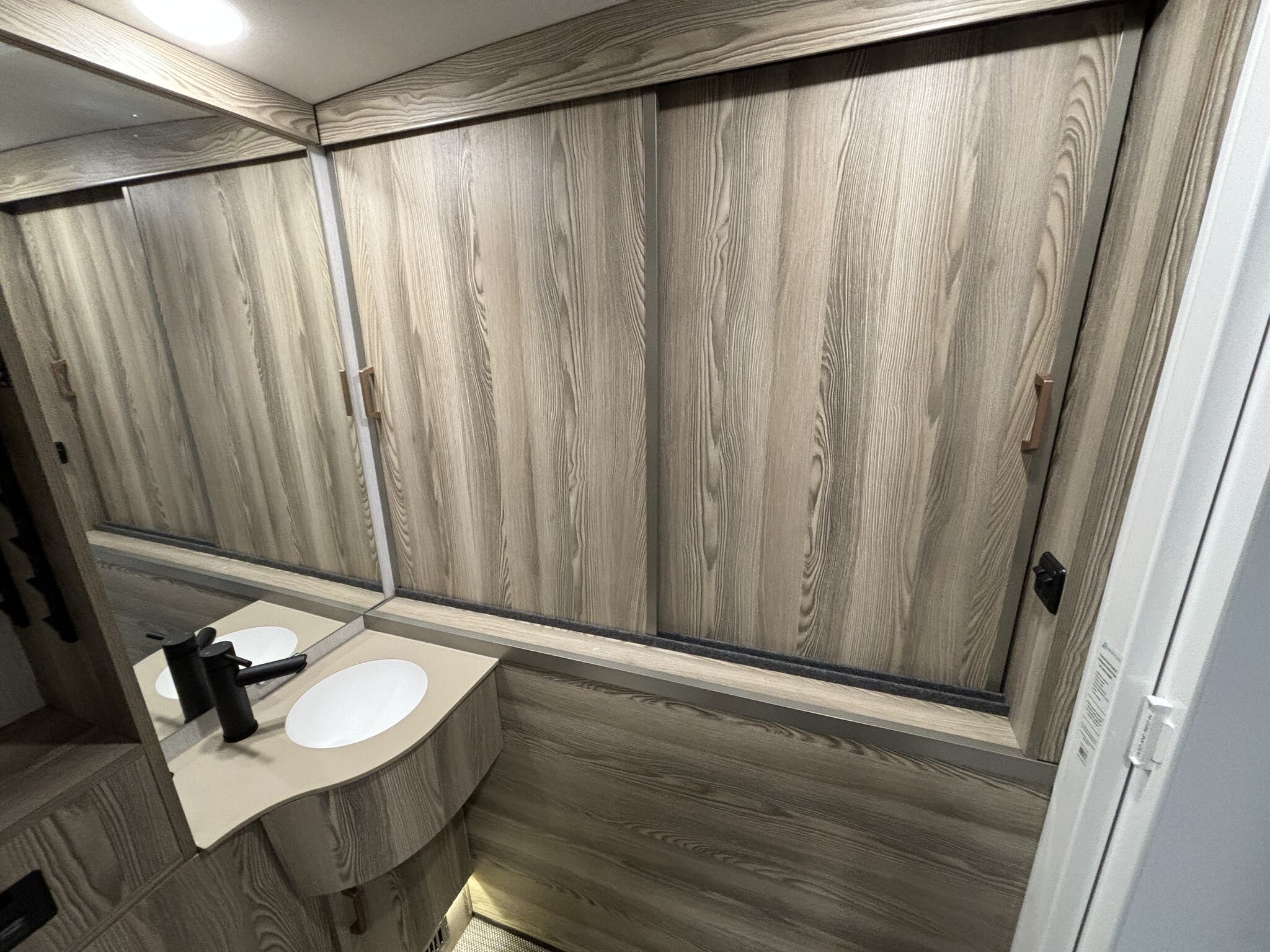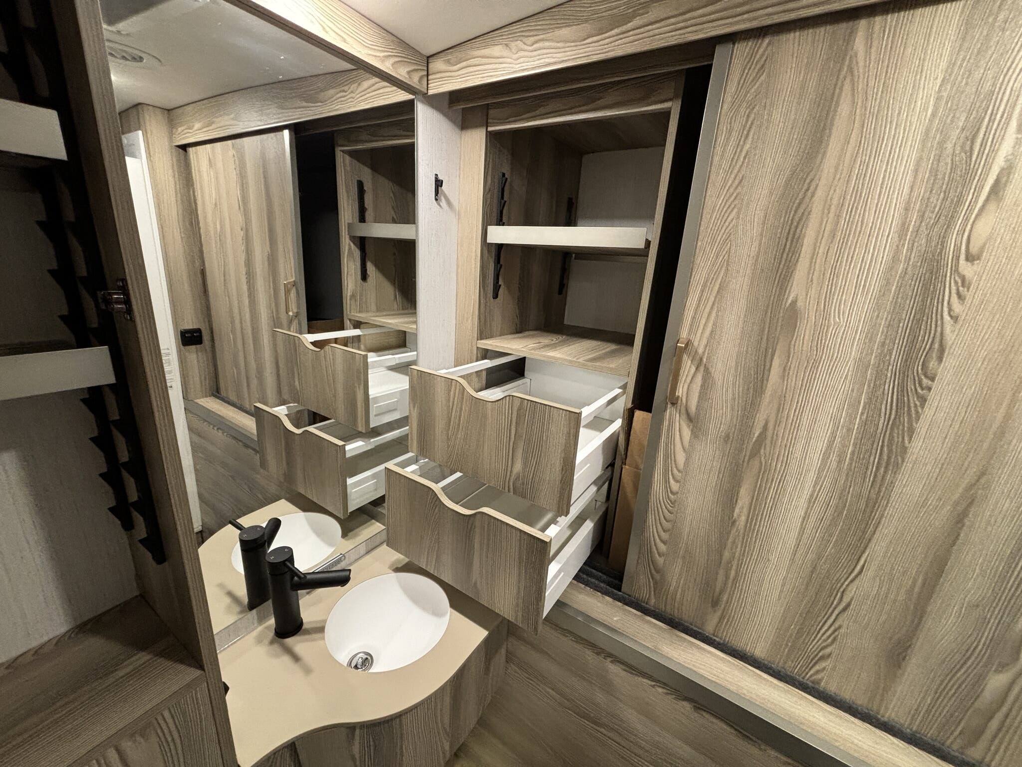 - Heated gear garage w/L-track cargo tie down system, 110V/12V charging ports, and LED lighting