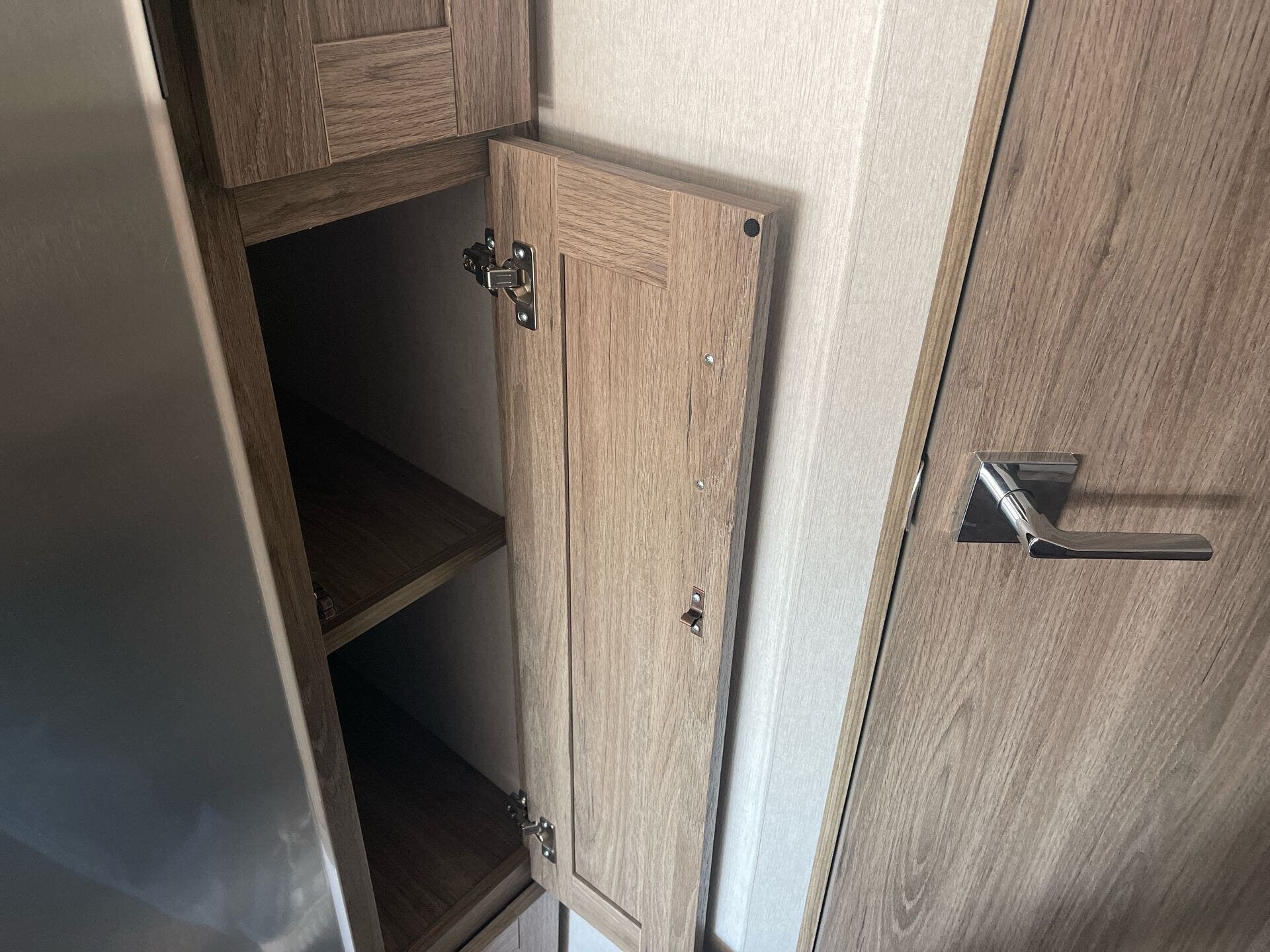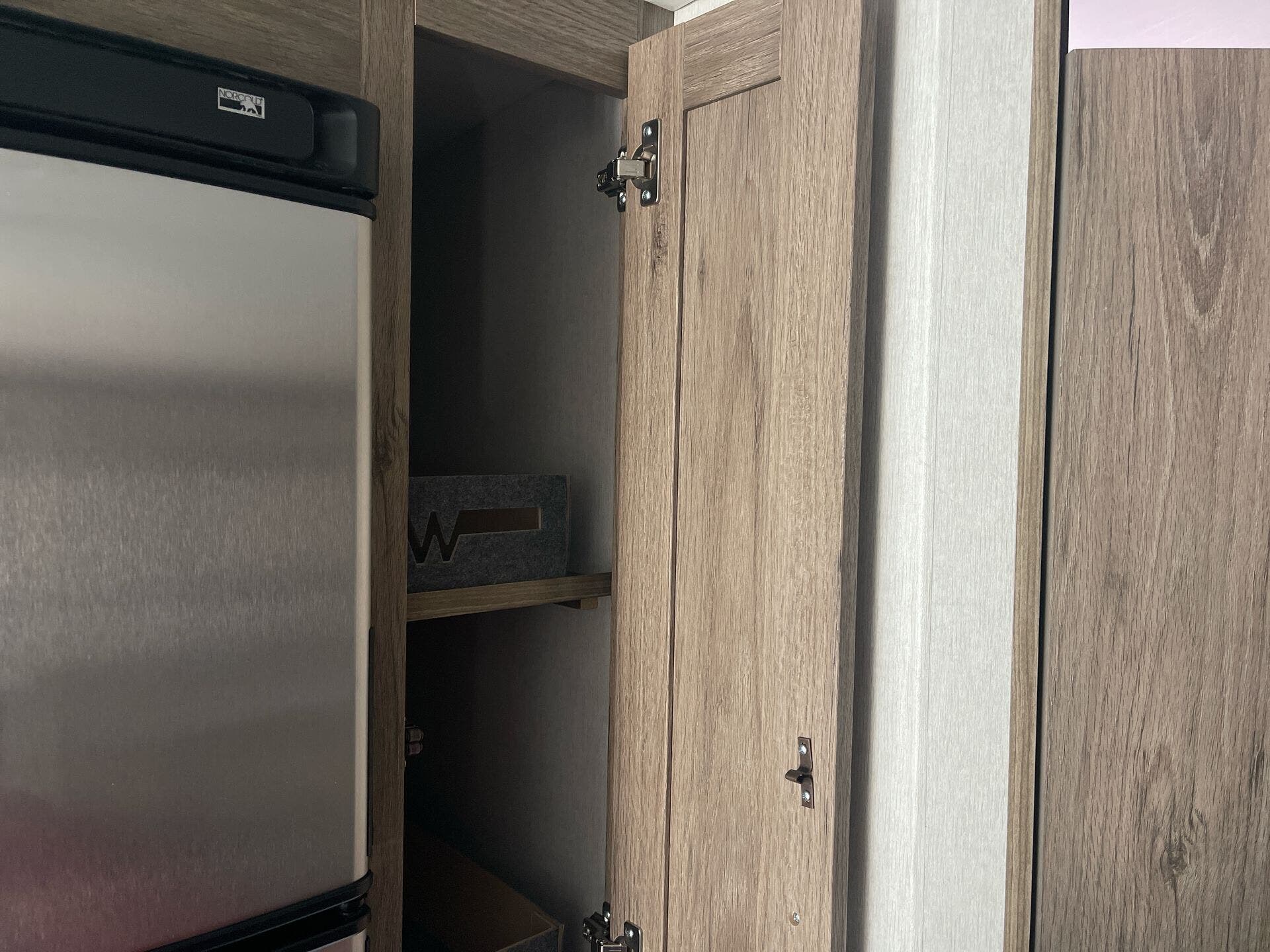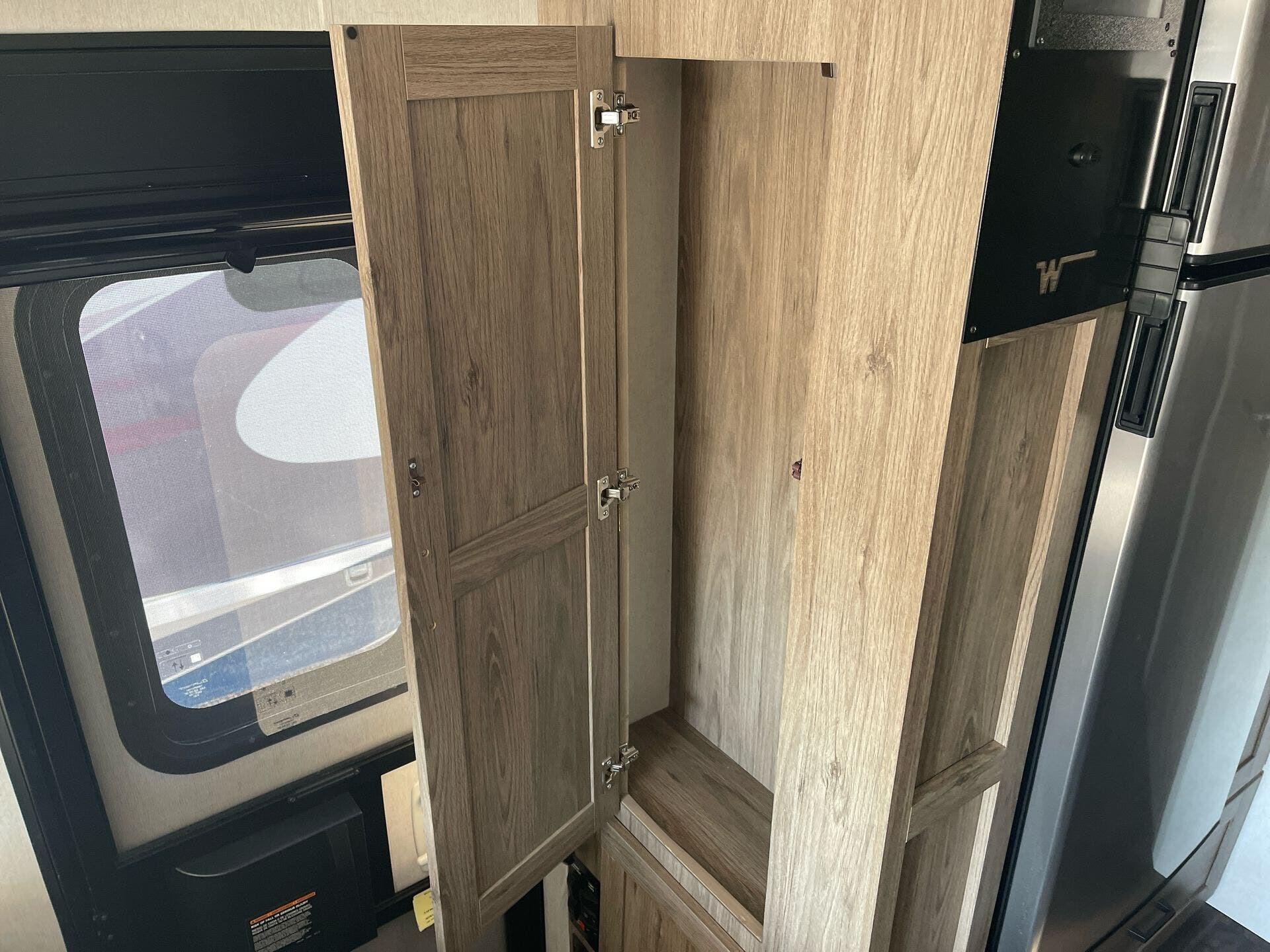 - Water heater and ample storage including pantry and medicine cabinet