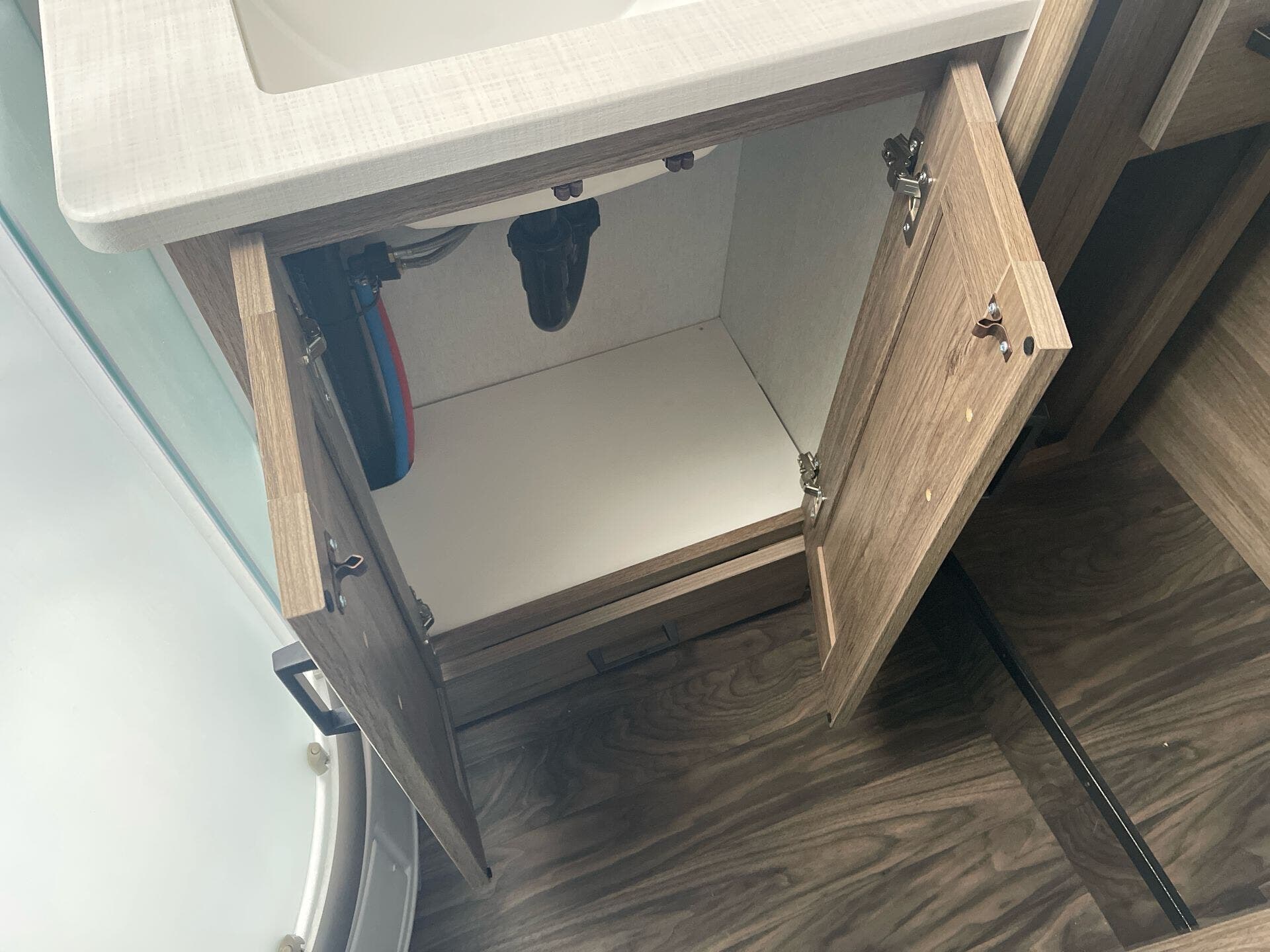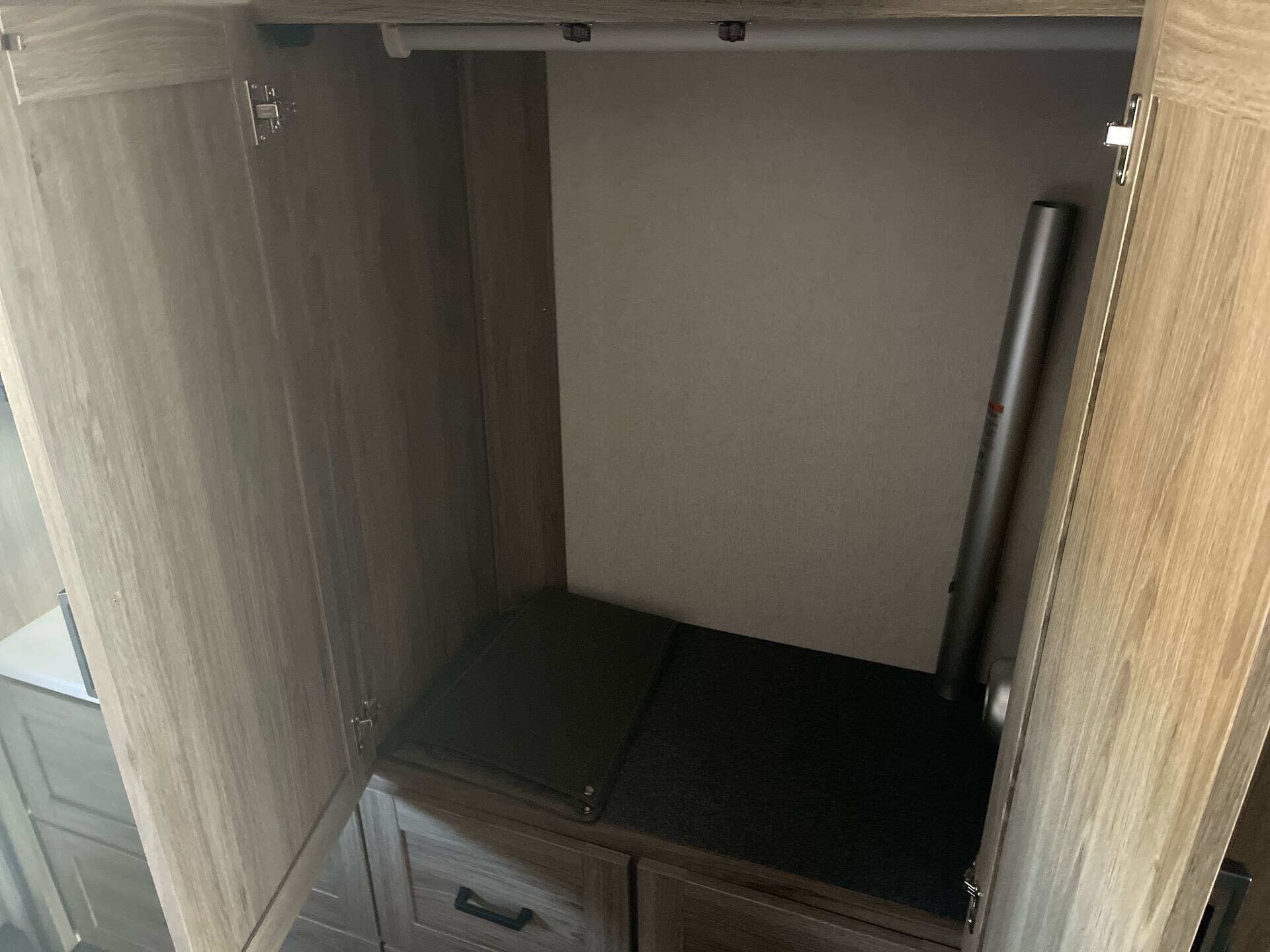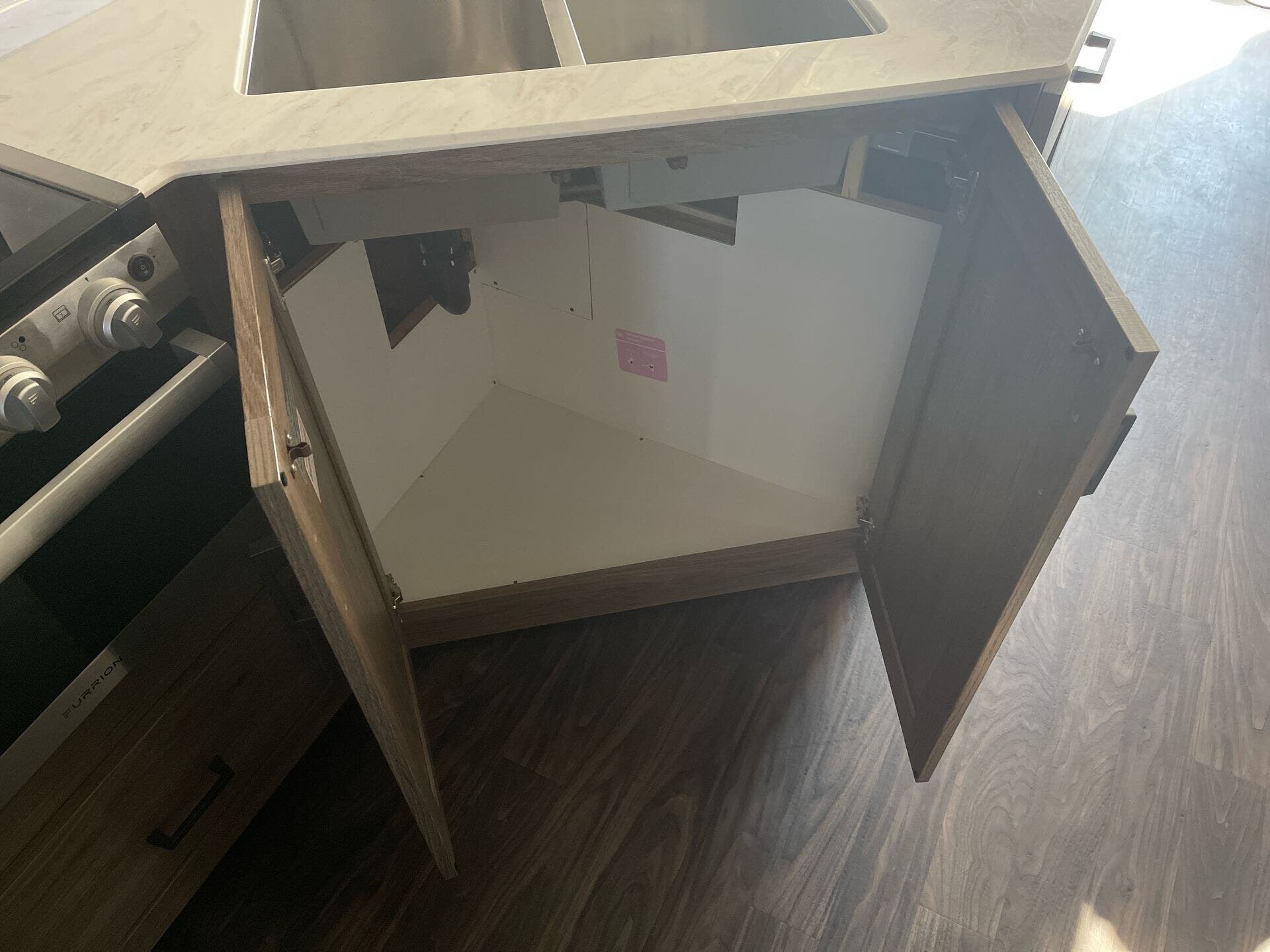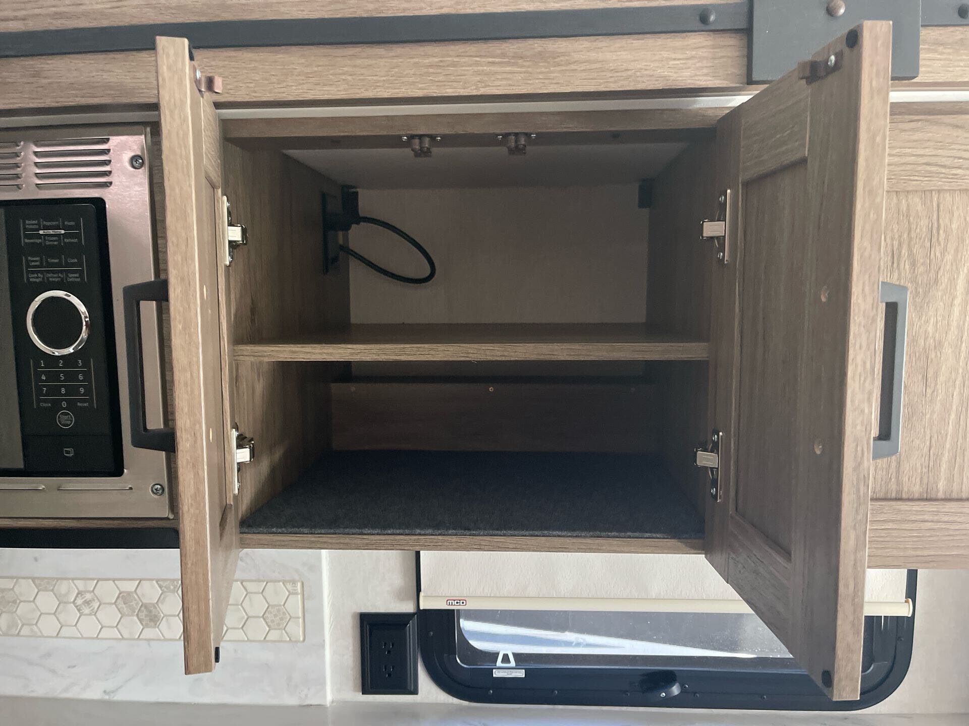 - Water heater and ample storage including pantry and medicine cabinet