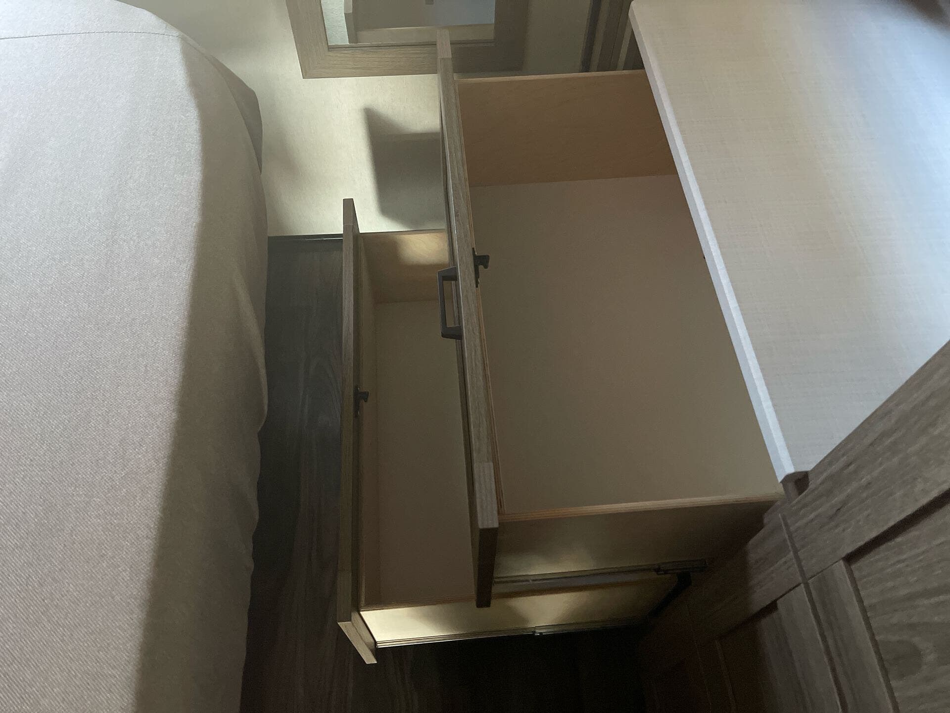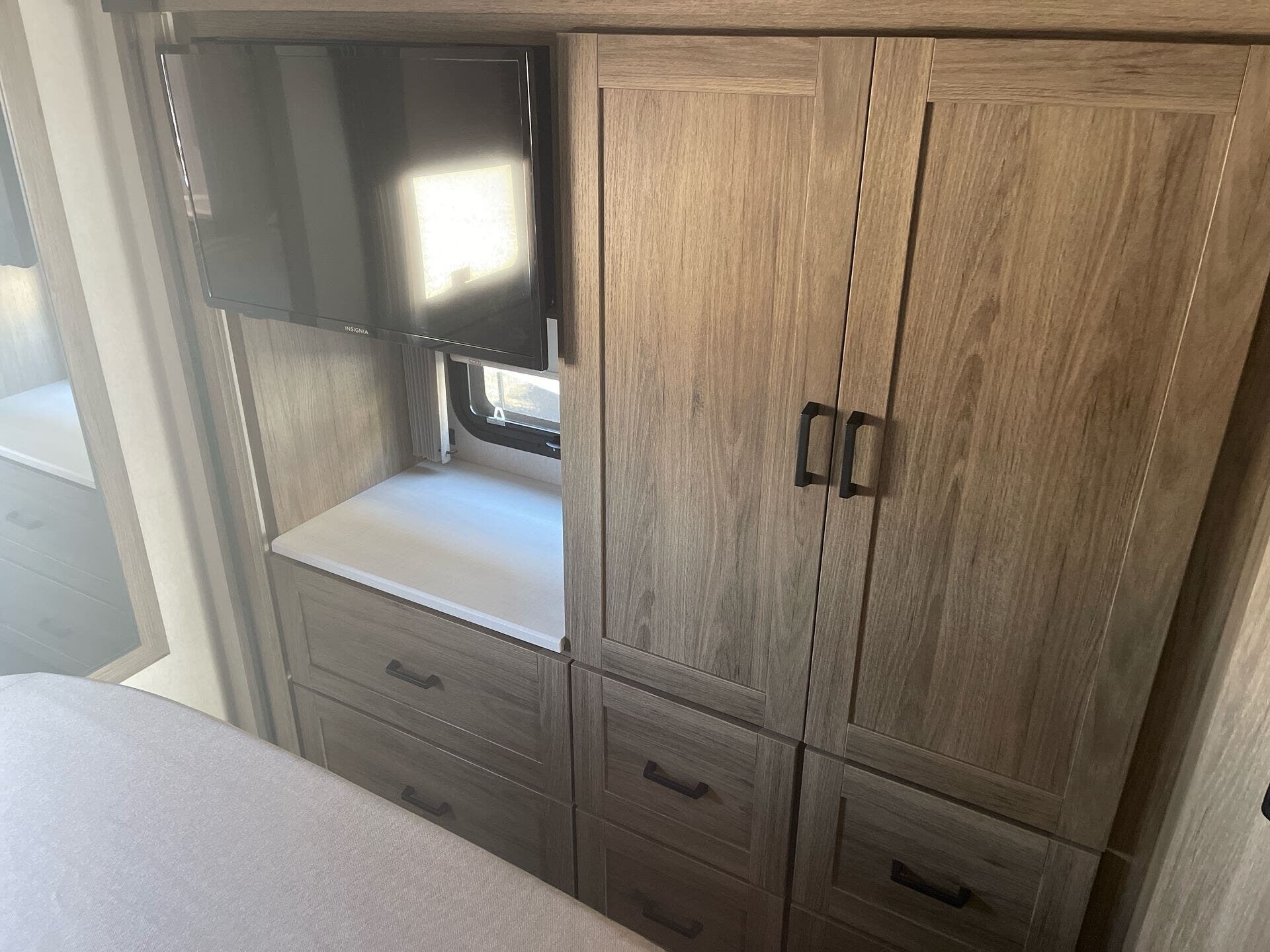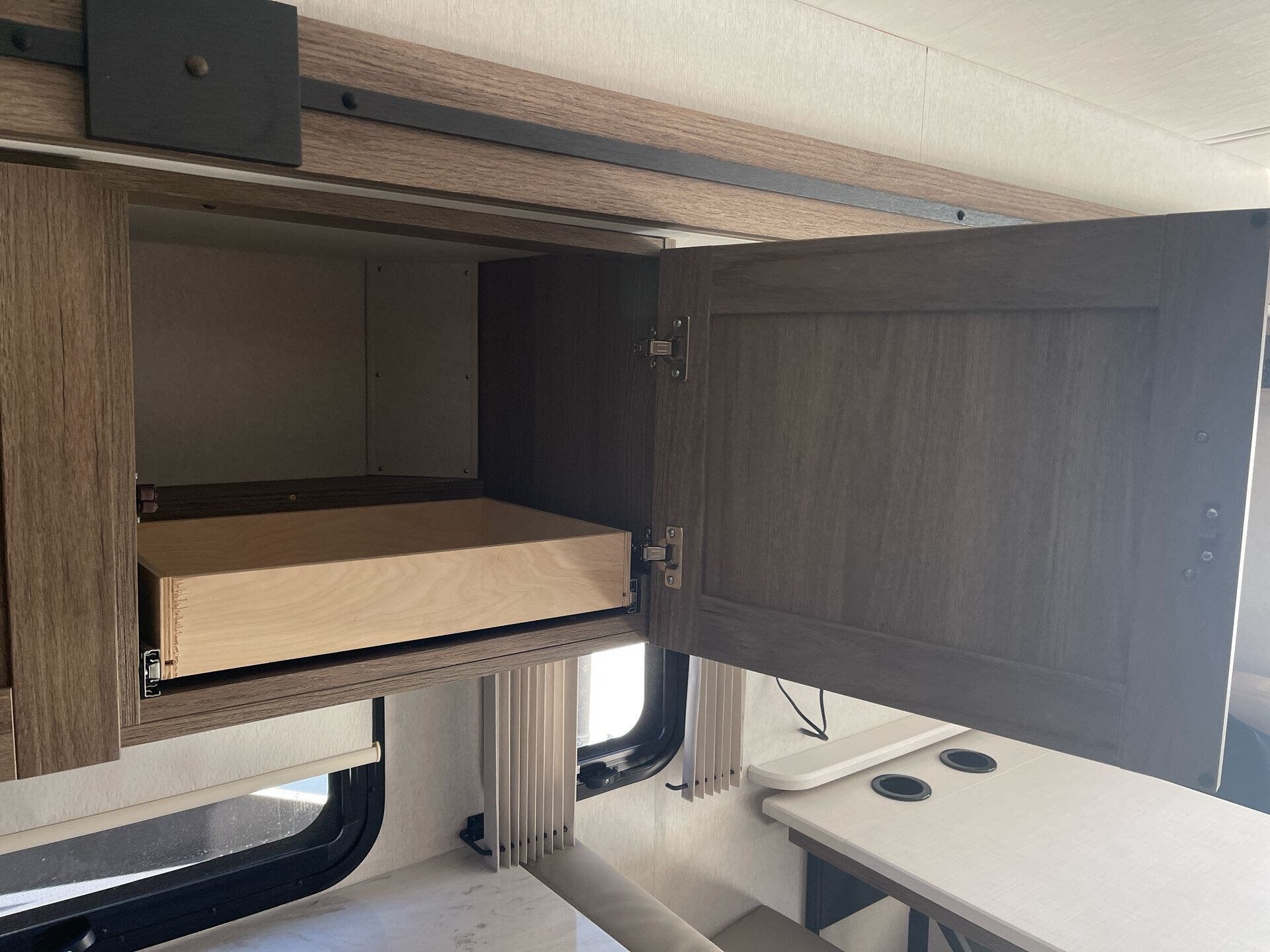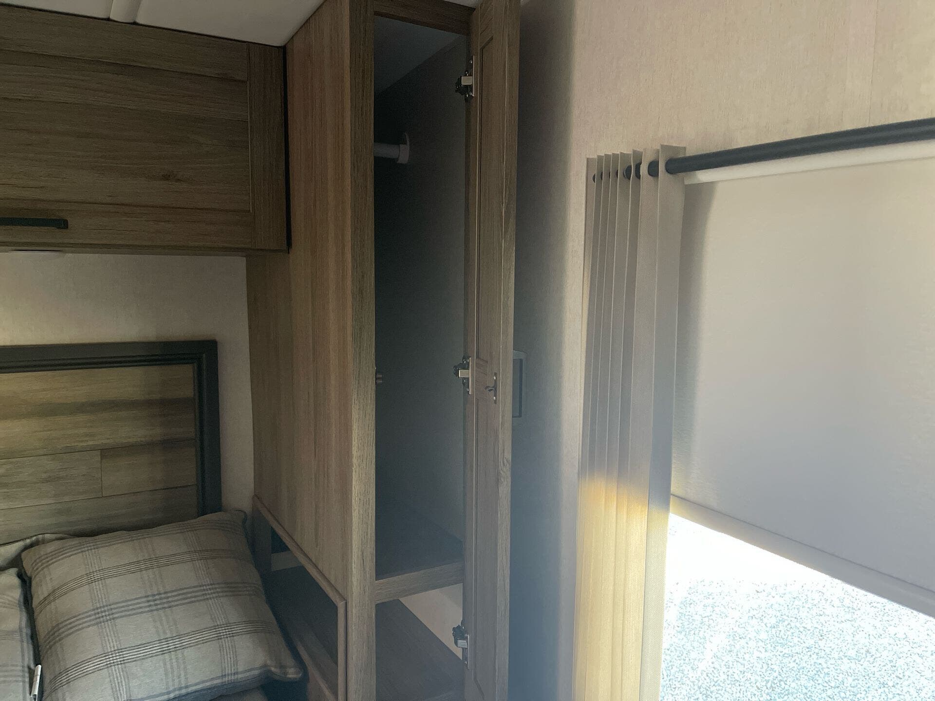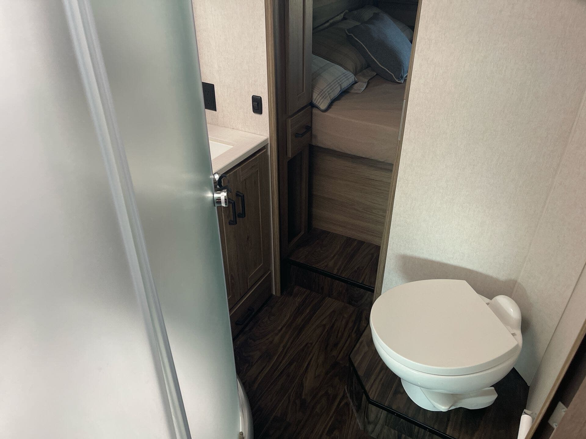 Dinette, Glass Shower Door, Medicine Cabinet, Pantry, Queen Bed, Shower, Toilet
